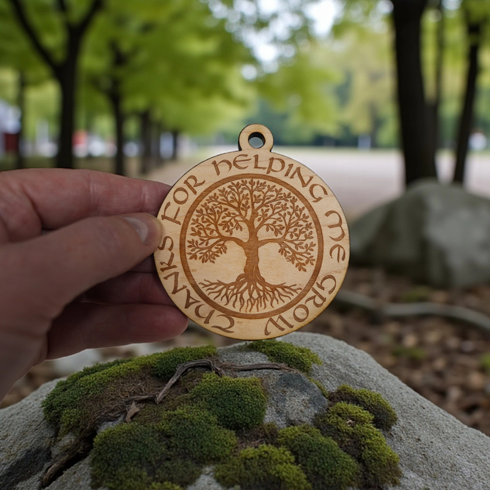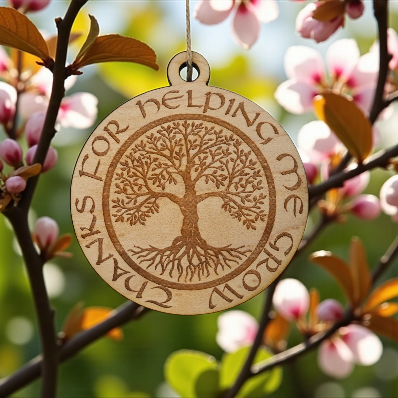 Ornament - Thanks for Helping Me Grow - Raw Wood 3x3in