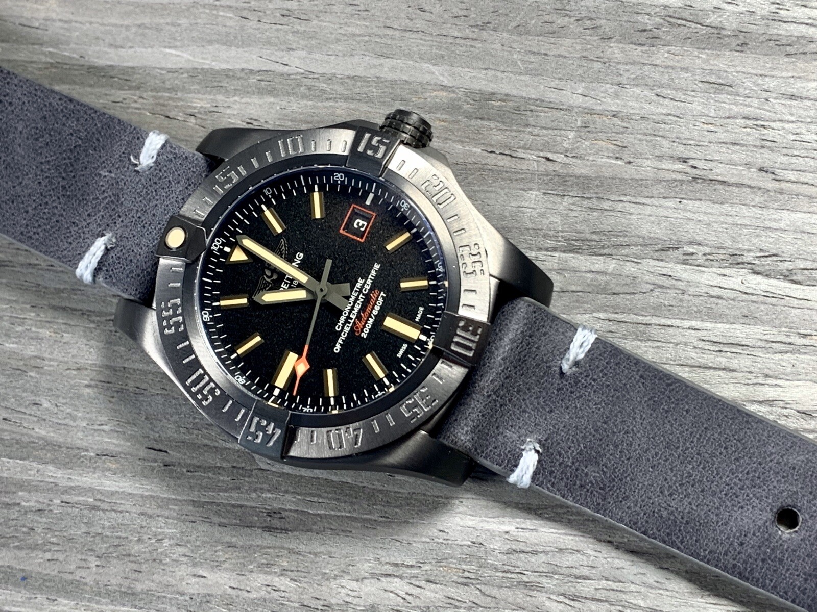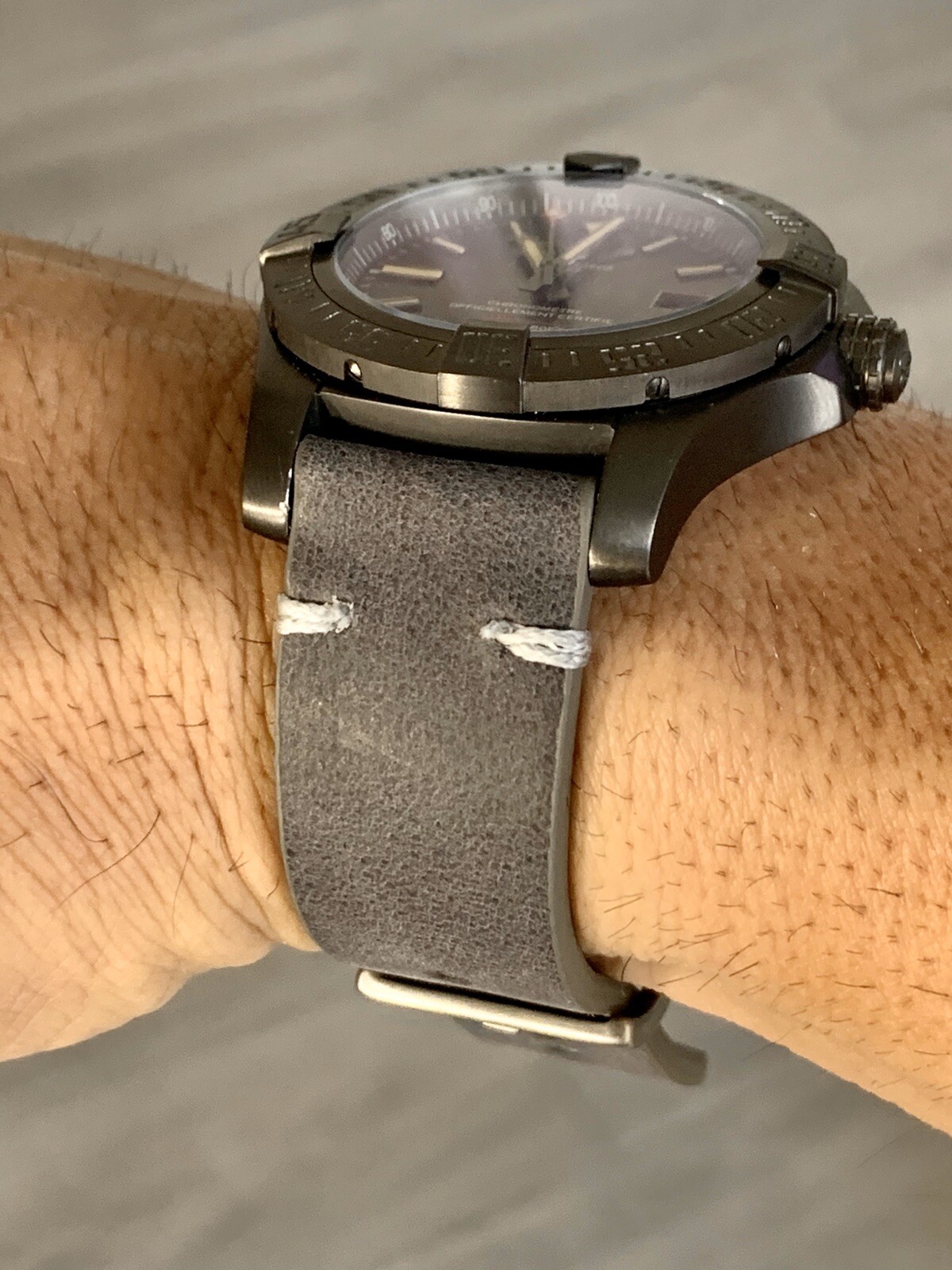 как выглядит 22mm DARK GRAY Crazy Horse Leather Watch Strap GRAY stitch - Quick release фото