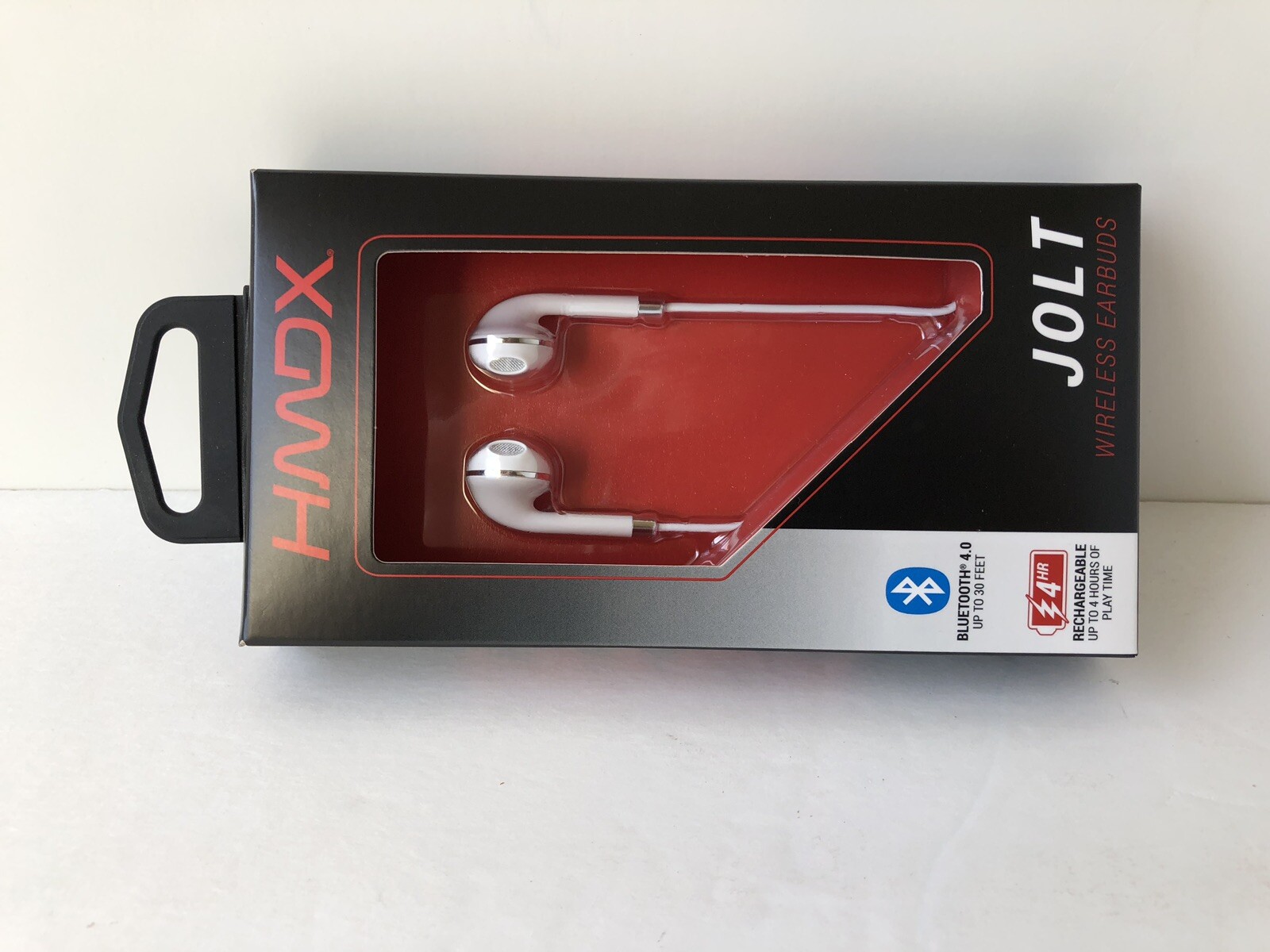 HMDX Jolt Bluetooth 4.0 Earbuds Wireless White Hands Free Rechargeable