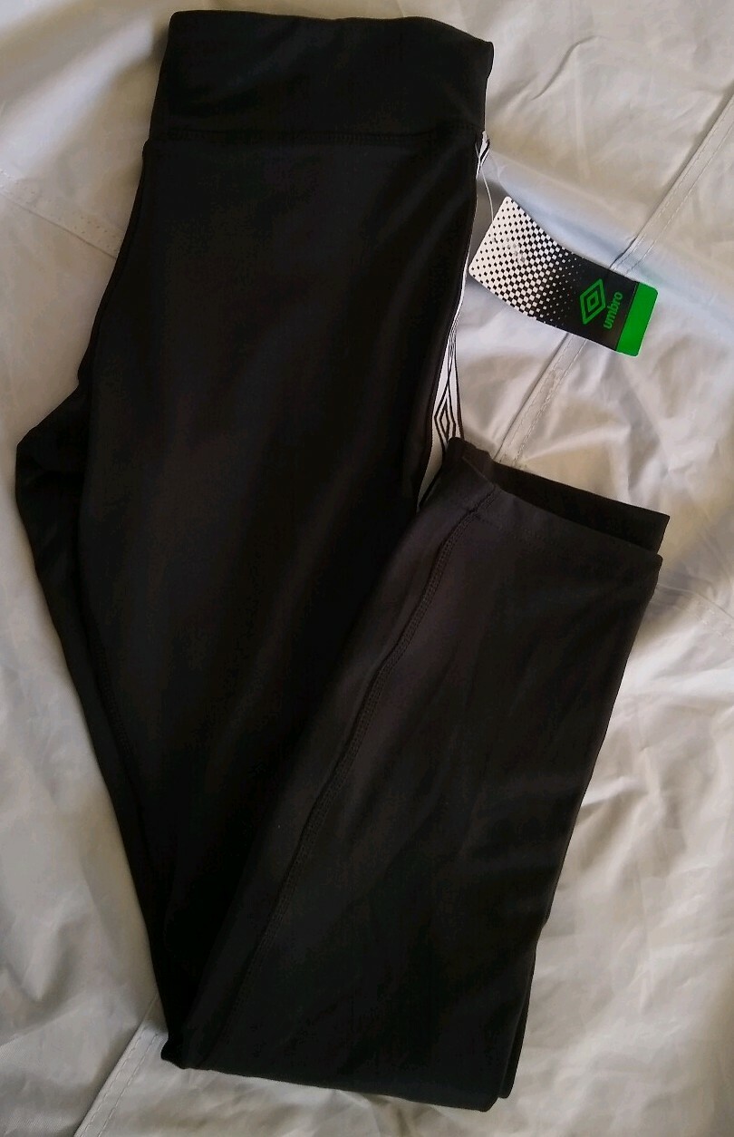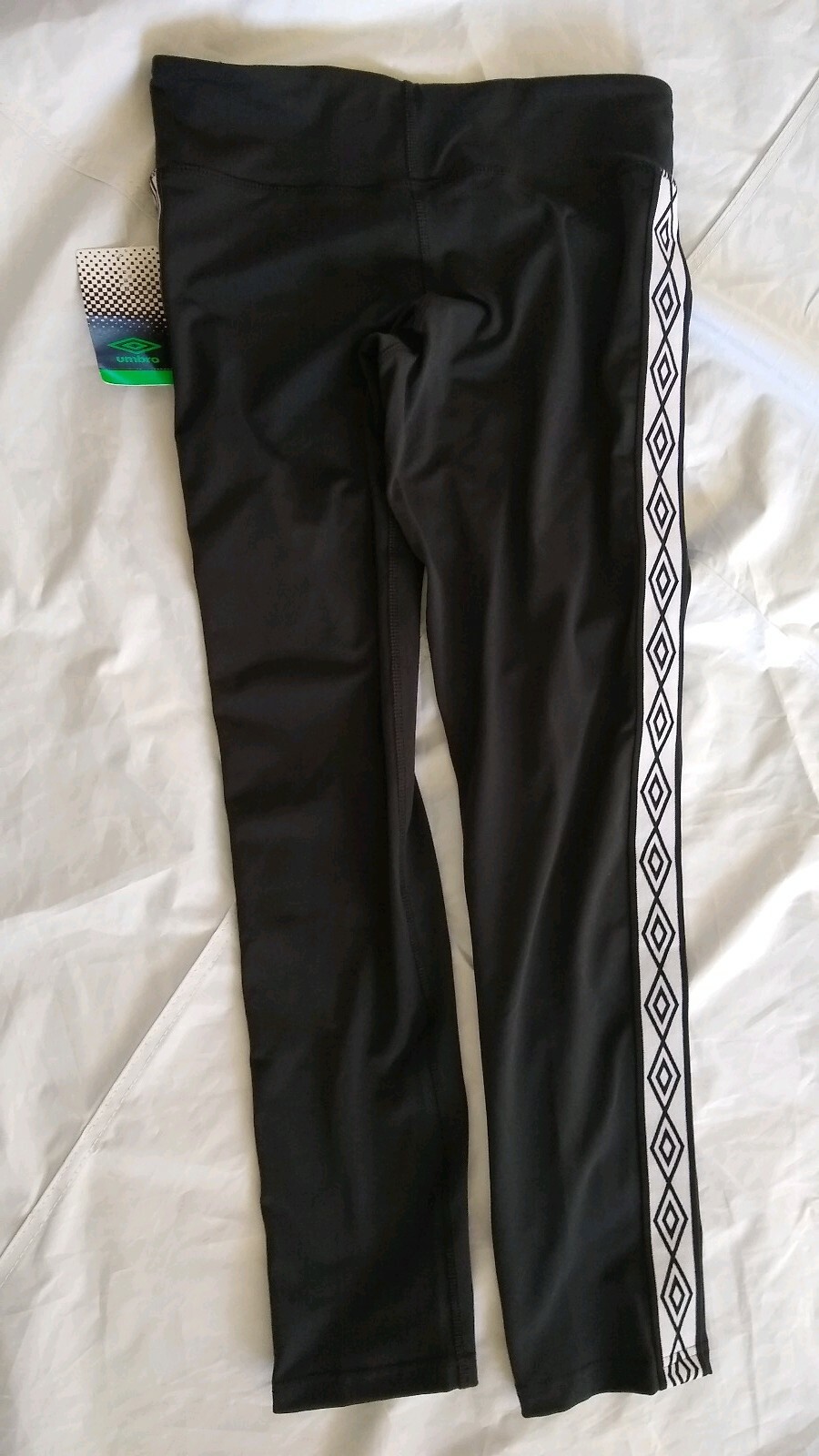 как выглядит Umbro Girls Double Diamond Performance Black White Leggings Size XL 14-16 фото