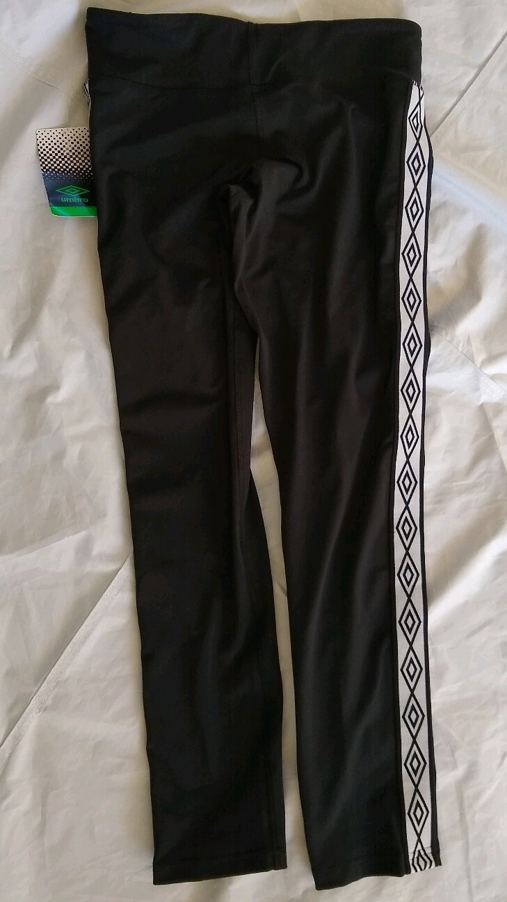 Umbro Girl's Double Diamond Performance Black White Leggings Size XL 14-16