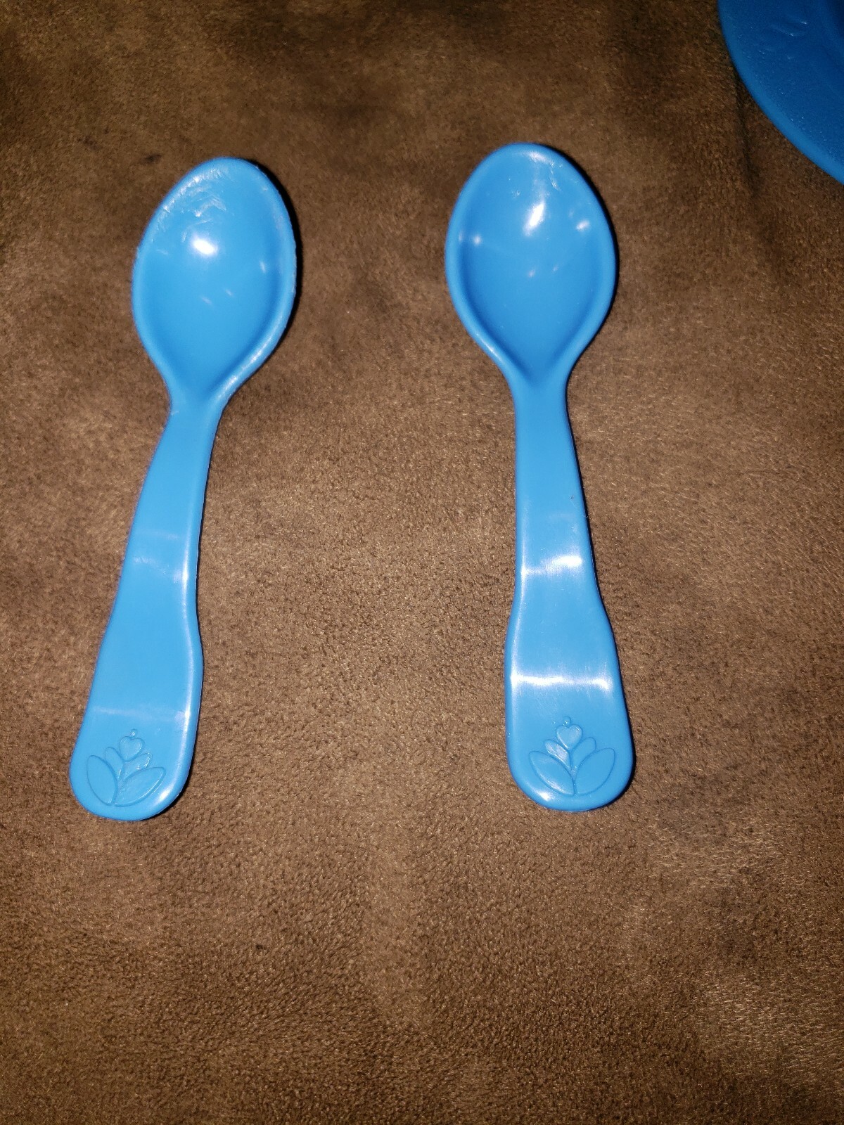 4 Fisher Price Fun with Food Vintage Tea Set BLUE Plate In 1 thru 3 2 Spoons
