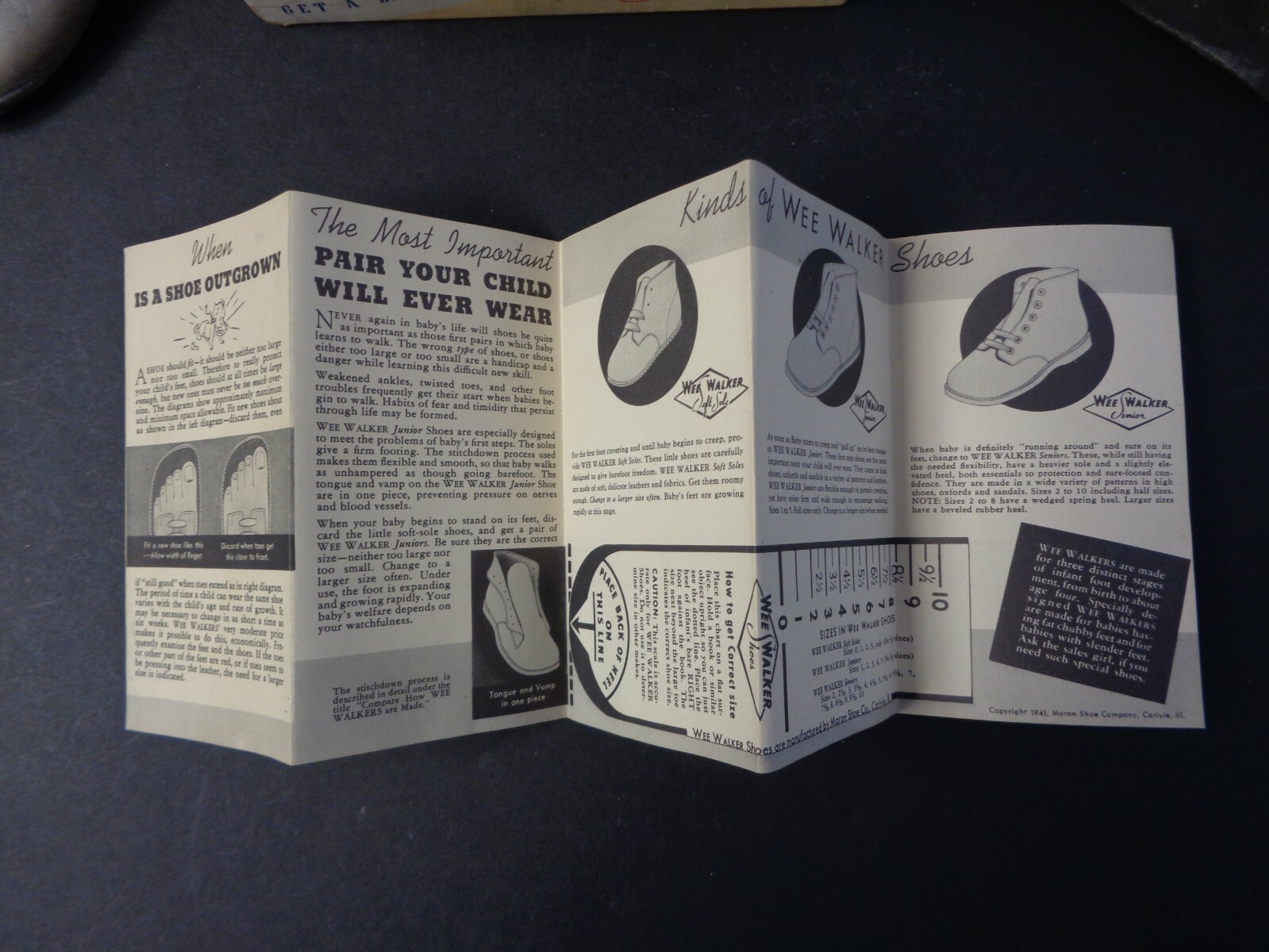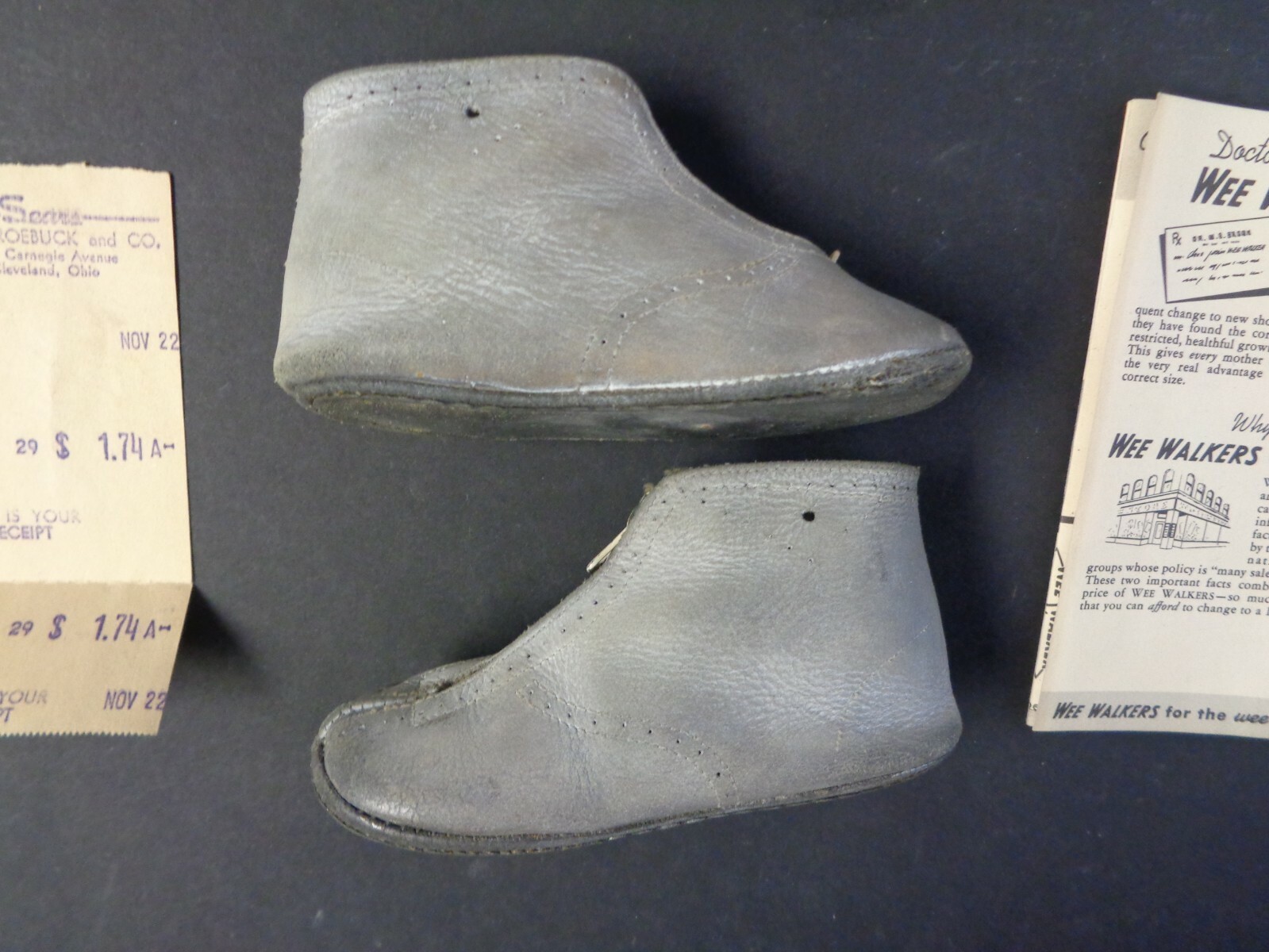 Wee Walker baby shoes in original yellow box from Sears Roebuck with receipt