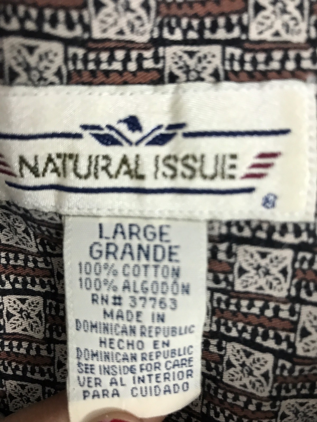 NATURAL ISSUE Button Dress Shirt Size L Plaid Checks Cotton Long Sleeves