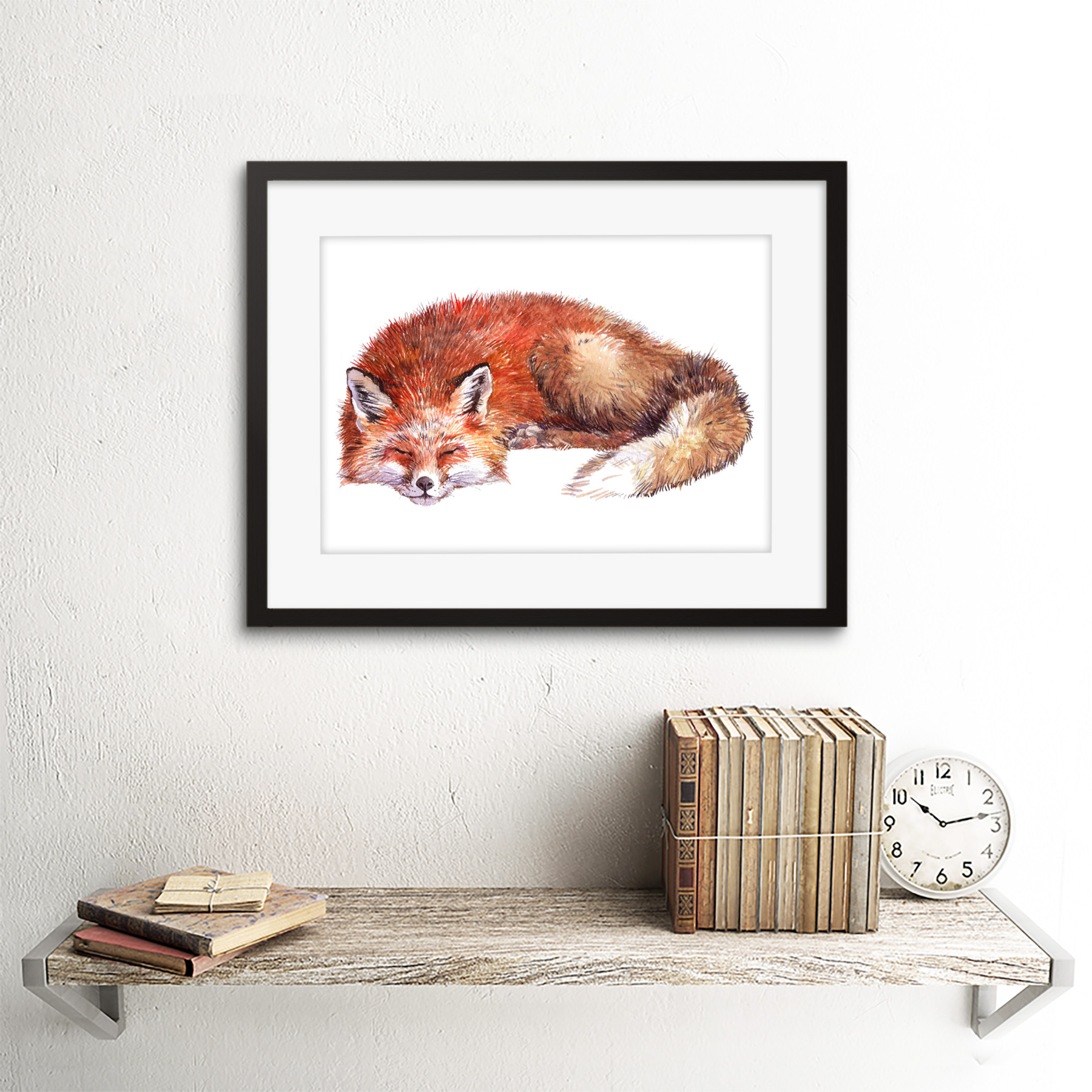 • Fox Sleeping Watercolour Framed Wall Art Print 12X16 In