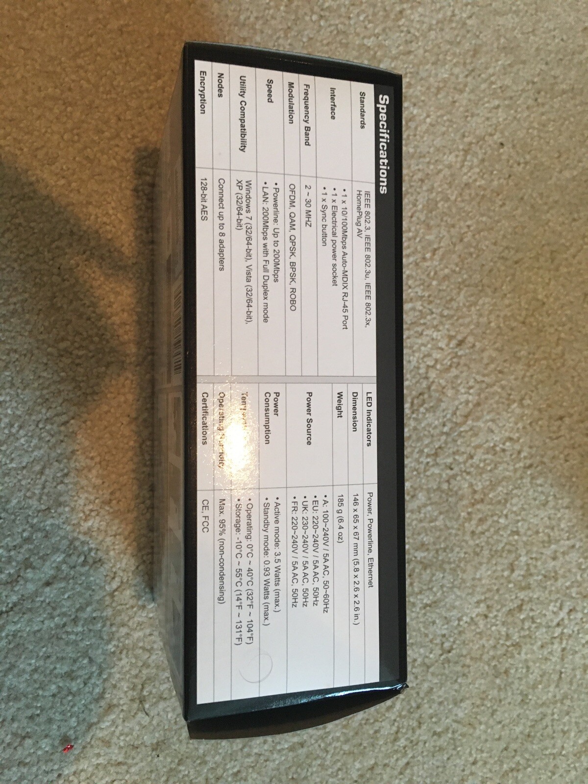 Max. Powerline Data Rate: 200 Mbps