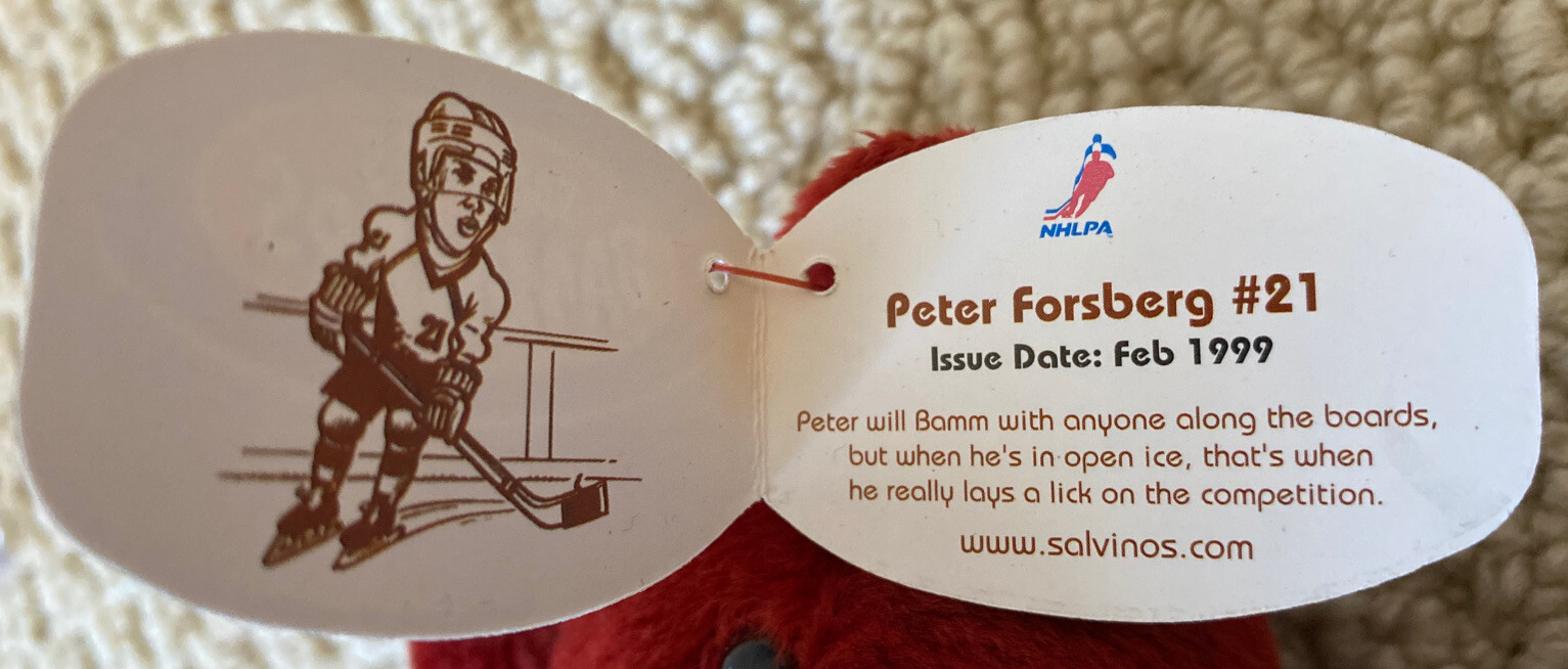 Salvino's Bammers Peter Forsberg 21, 1999 Beanie Bear, Includes Display Case