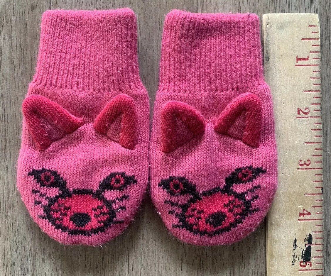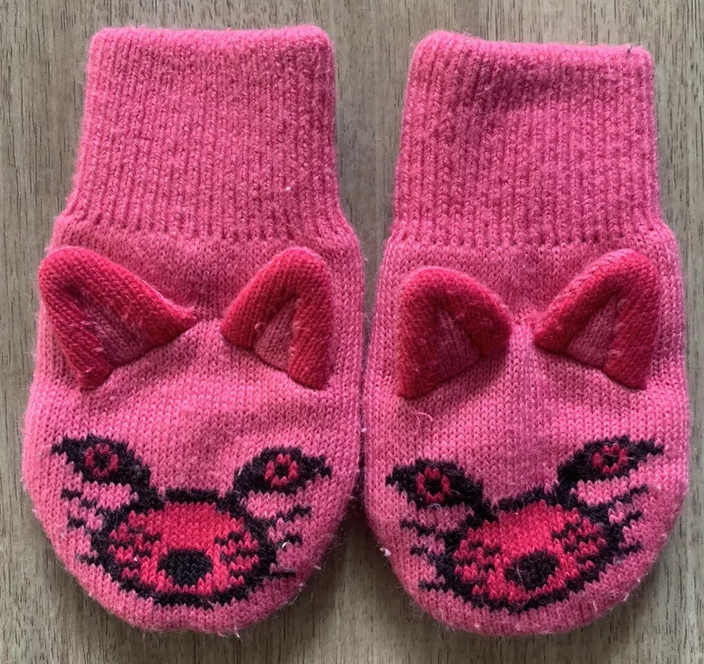 Columbia Girls Infant O/S Pink Knitted Insulated Kitty Cat Mittens