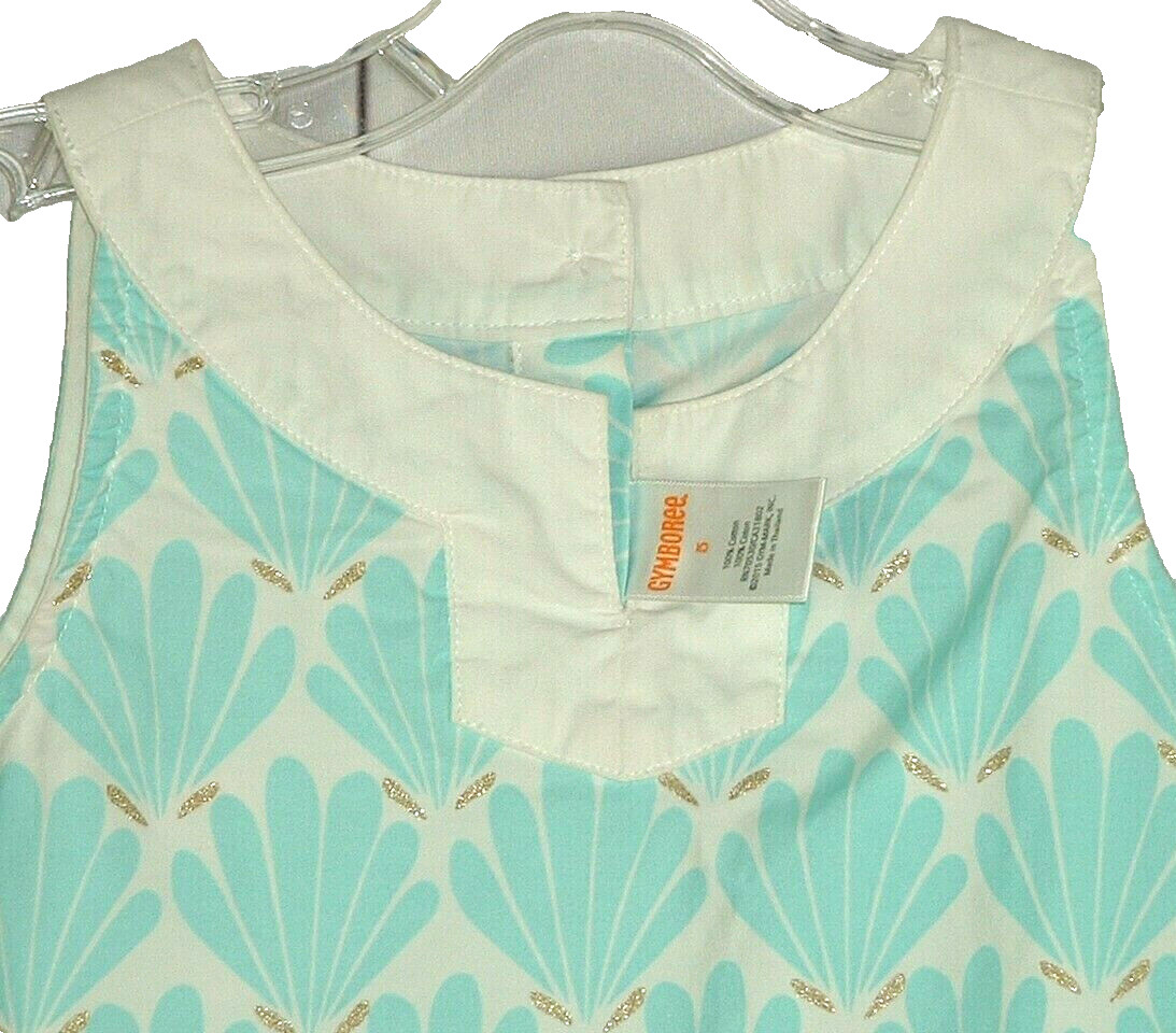 как выглядит Gymboree Girls Teal Sea Shell Gold Glitter Accents Unlined Dress White Trim 5Y фото