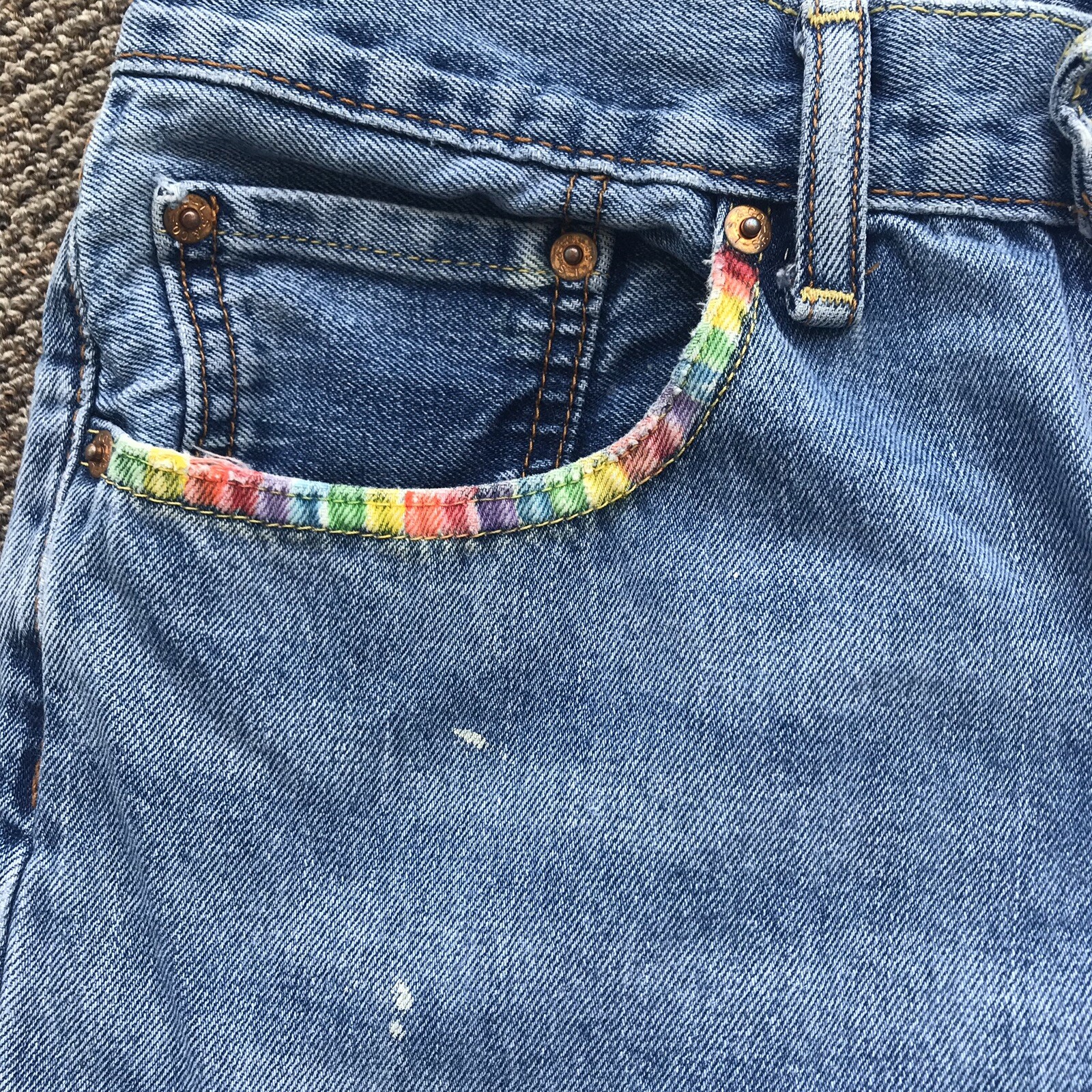 как выглядит Levi s 505 Cut Off Denim Jean Shorts Frayed Destroyed Festival Rainbow Size 32 фото