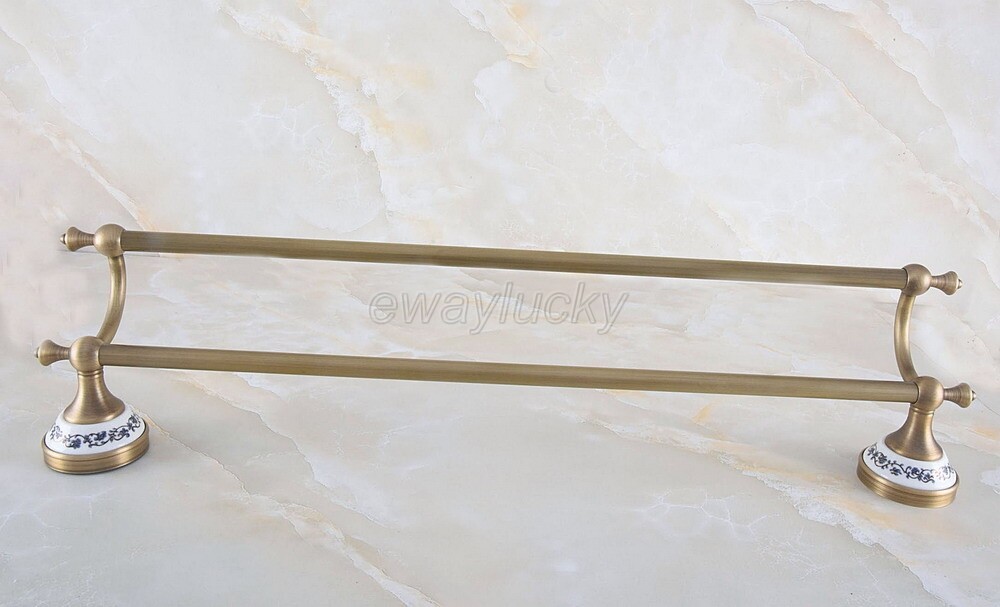 Antique Brass Double Towel Bar Rack Bathroom Wall Mounted Towel Holder wba772