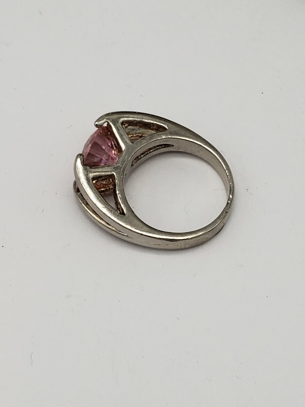 STERLING SILVER AND PINK CRYSTAL RING SIZE 5