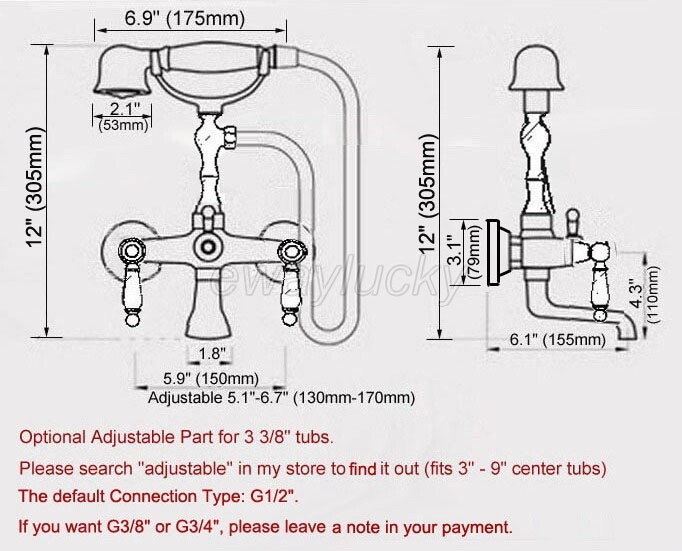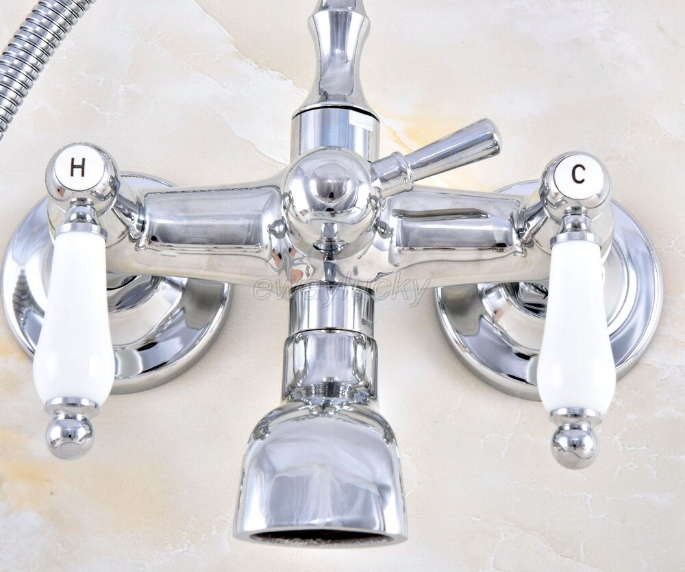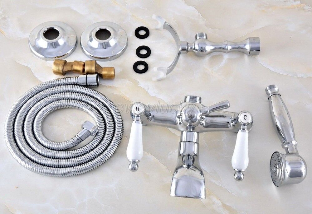 Bathroom Polished Chrome Brass Wall Mount Bathtub Clawfoot Faucet Hand Shower