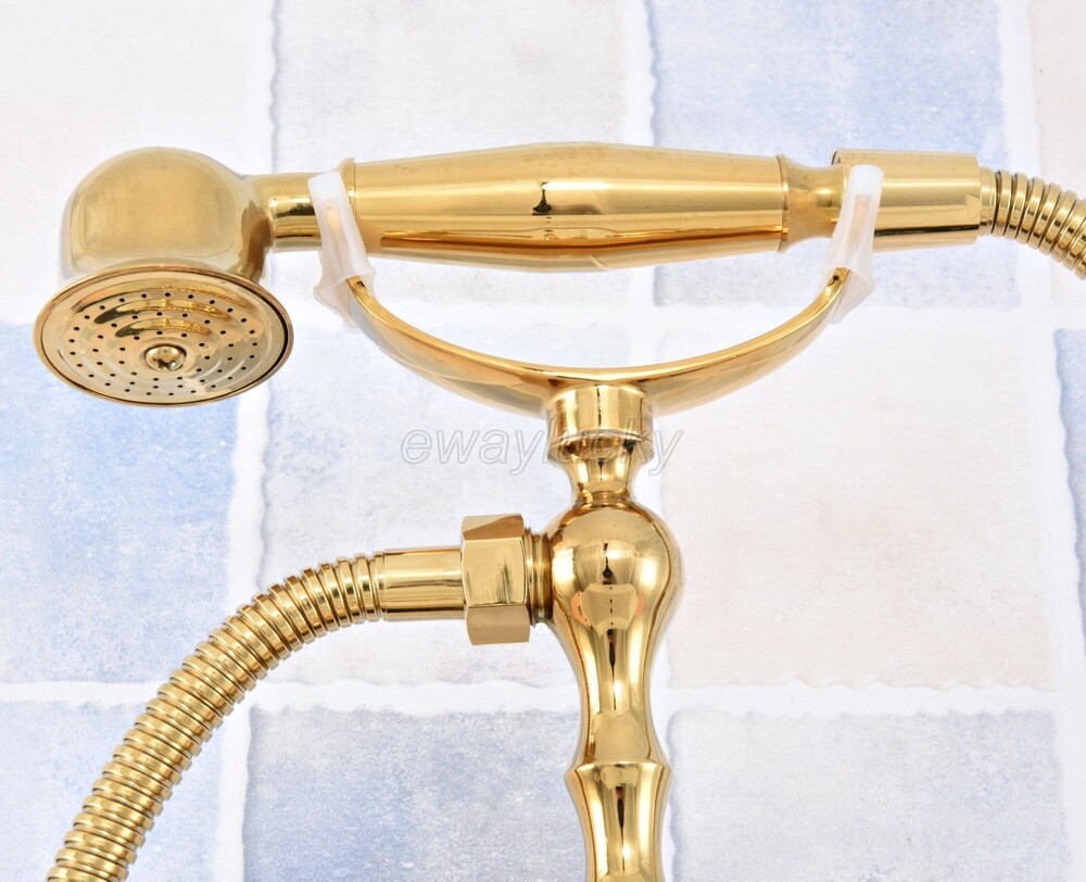 Luxury Gold Color Brass Deck Mount Bathtub Clawfoot Faucet w/Hand Shower Sprayer