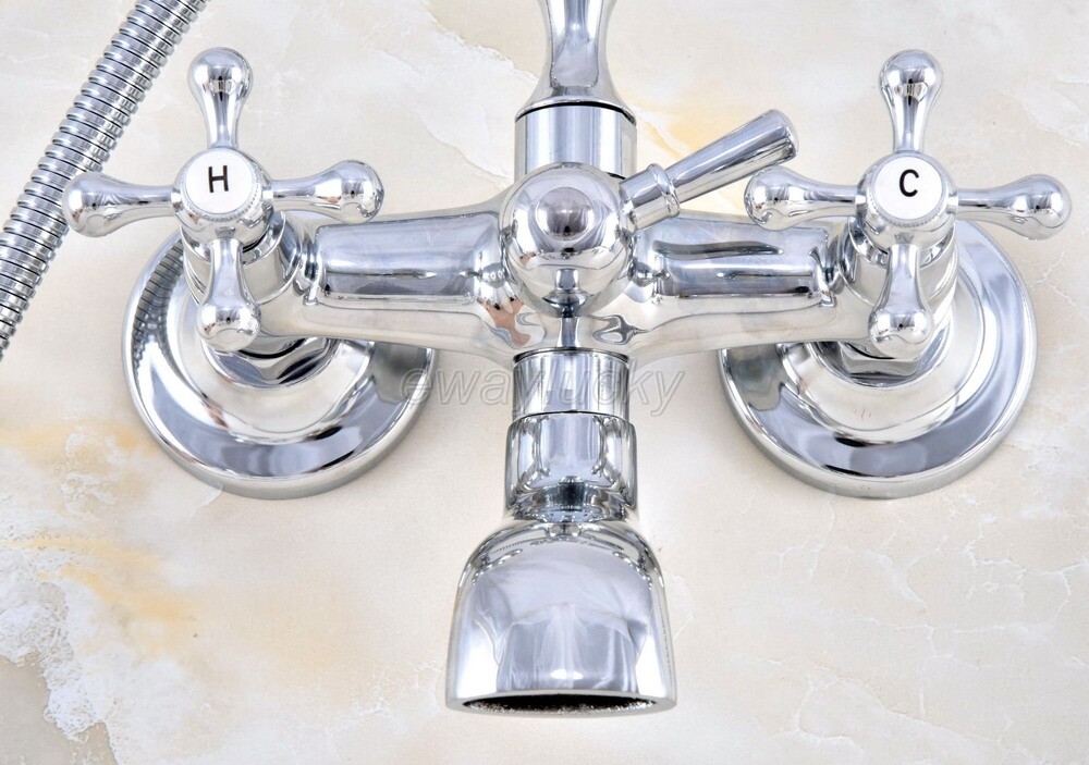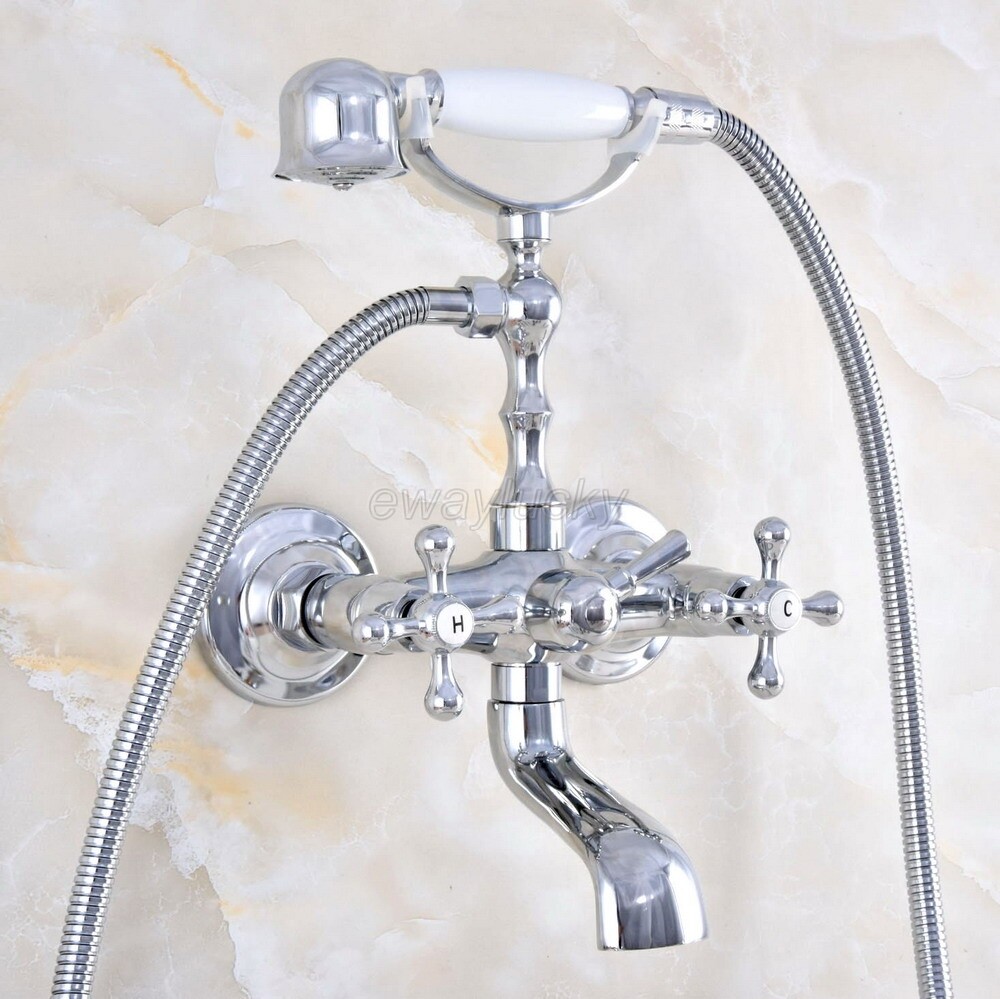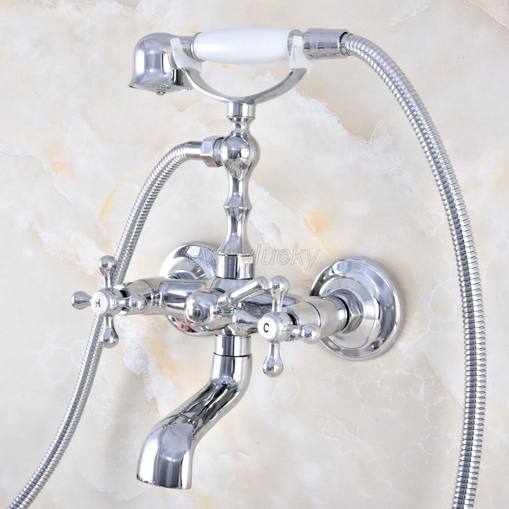 Bathroom Polished Chrome Brass Wall Mount Bathtub Clawfoot Faucet Hand Shower