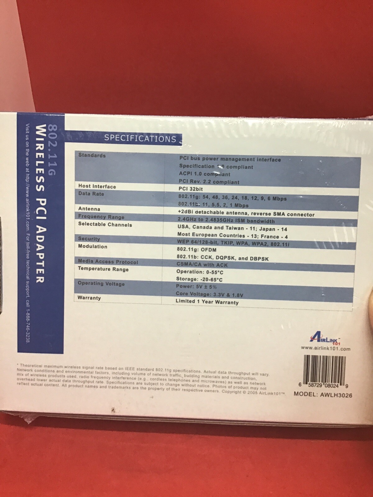 как выглядит AirLink101 - 802.11G Wireless PCI Desktop Adapter - AWLH3026 54Mbps фото