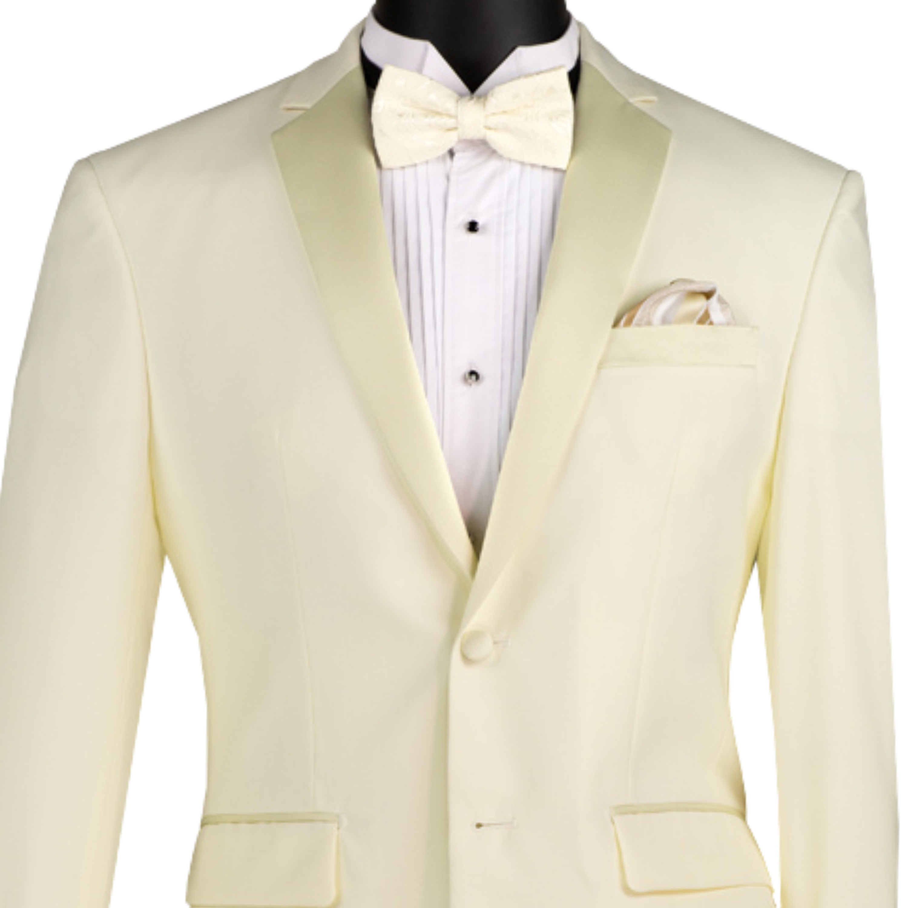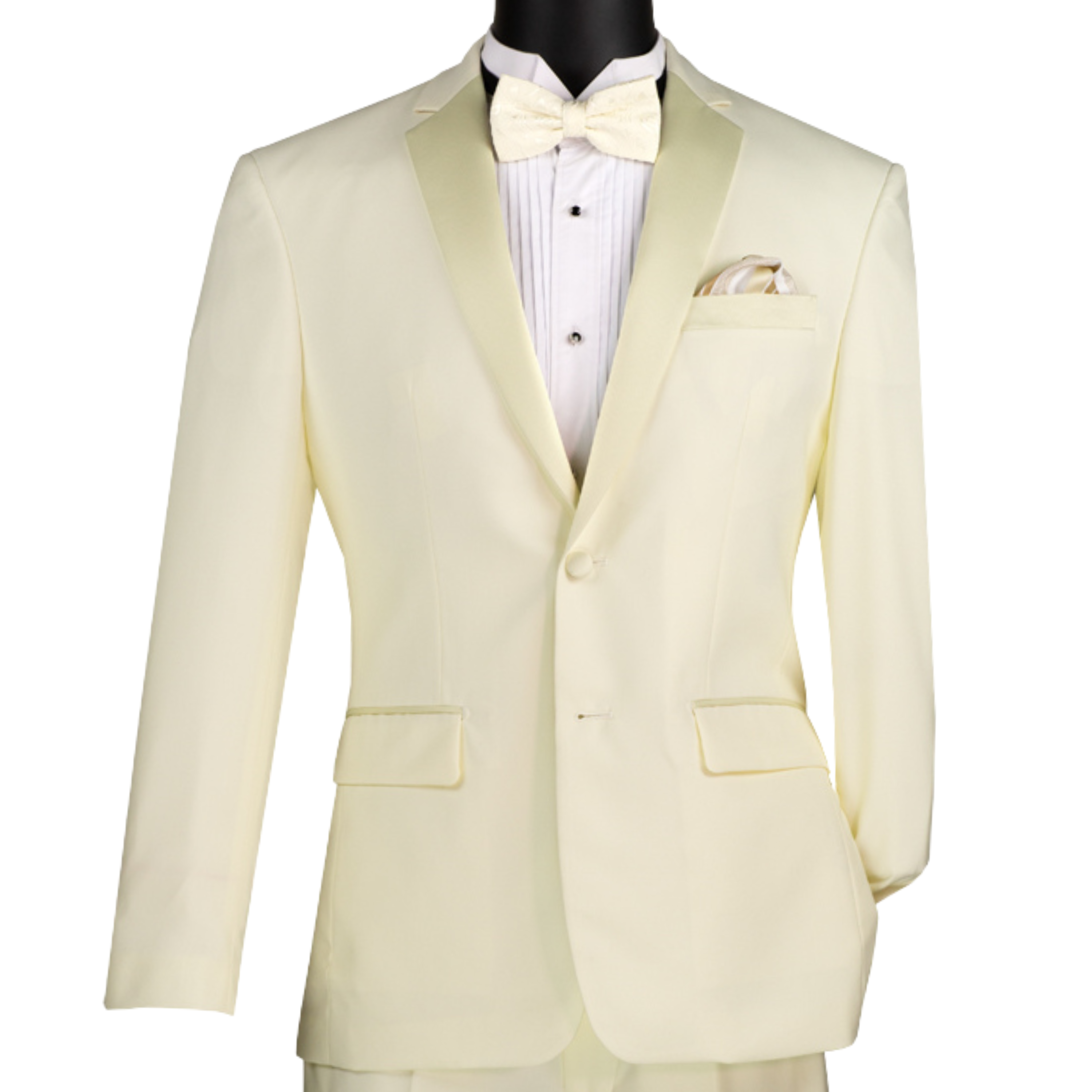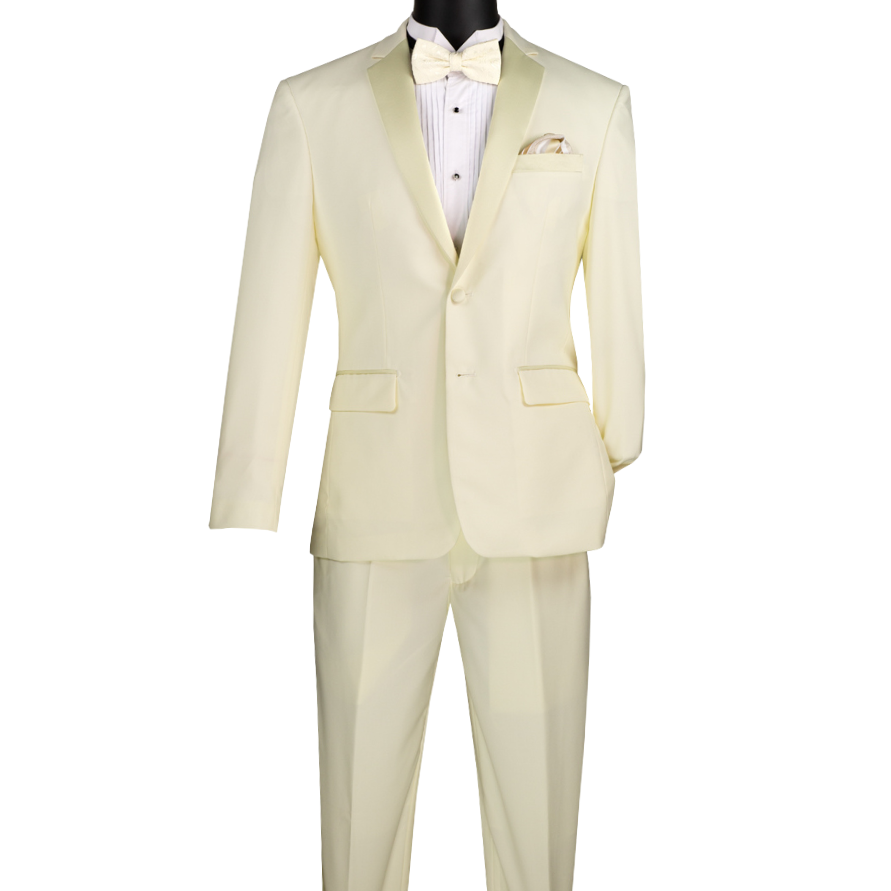 VINCI Men's Ivory Slim Fit Tuxedo Suit w/ Sateen Lapel Trim - NEW