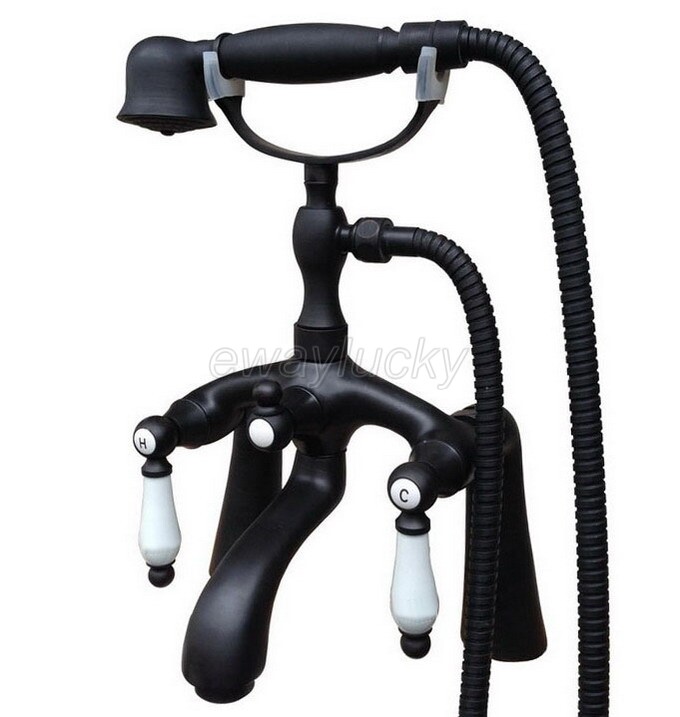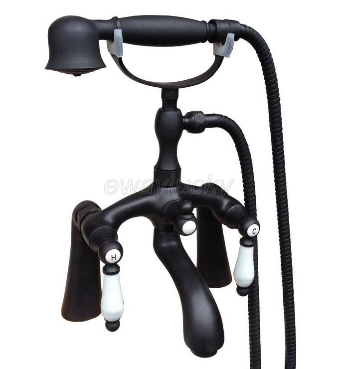 Oil Rubbed Bronze Deck Mount Clawfoot Bathtub Faucet W/ Hand Shower Mixer Tap