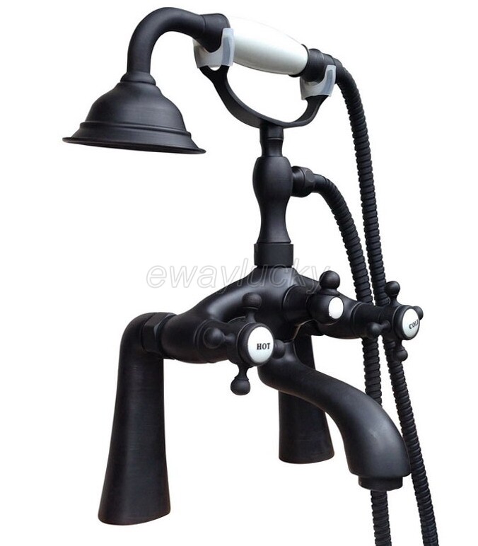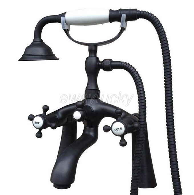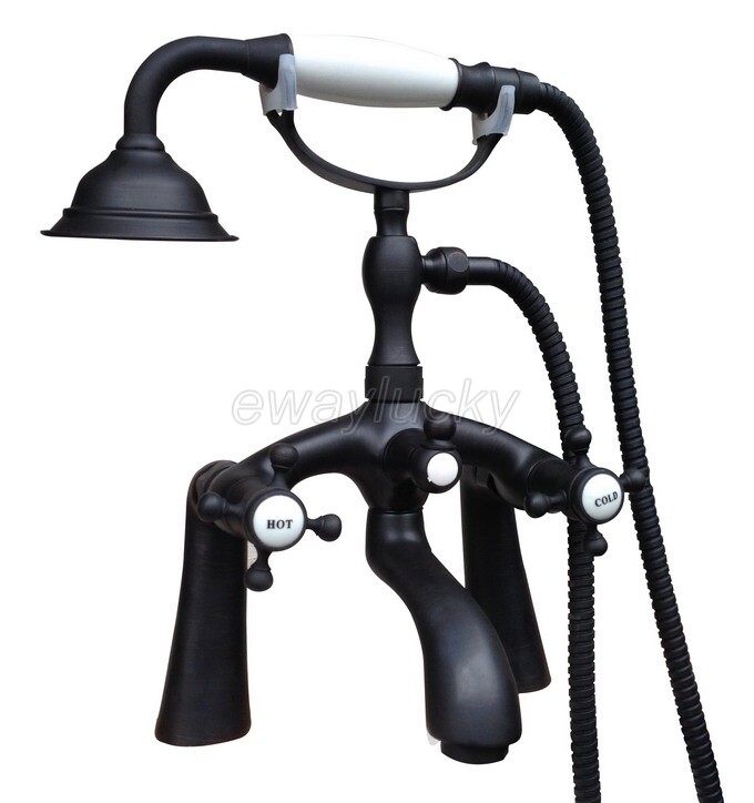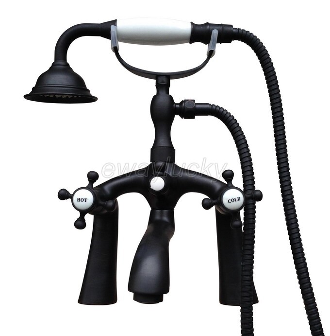 Oil Rubbed Bronze Deck Mount Clawfoot Bathtub Faucet W/ Hand Shower Mixer Tap