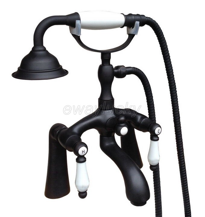 Oil Rubbed Bronze Deck Mount Clawfoot Bathtub Faucet W/ Hand Shower Mixer Tap