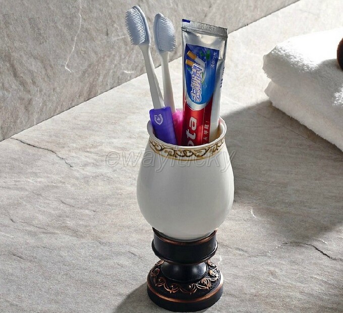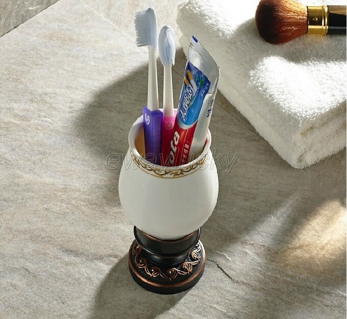 как выглядит Oil Rubbed Bronze Toothbrush Holder Single Ceramic Cup Holder Deck Mounted фото