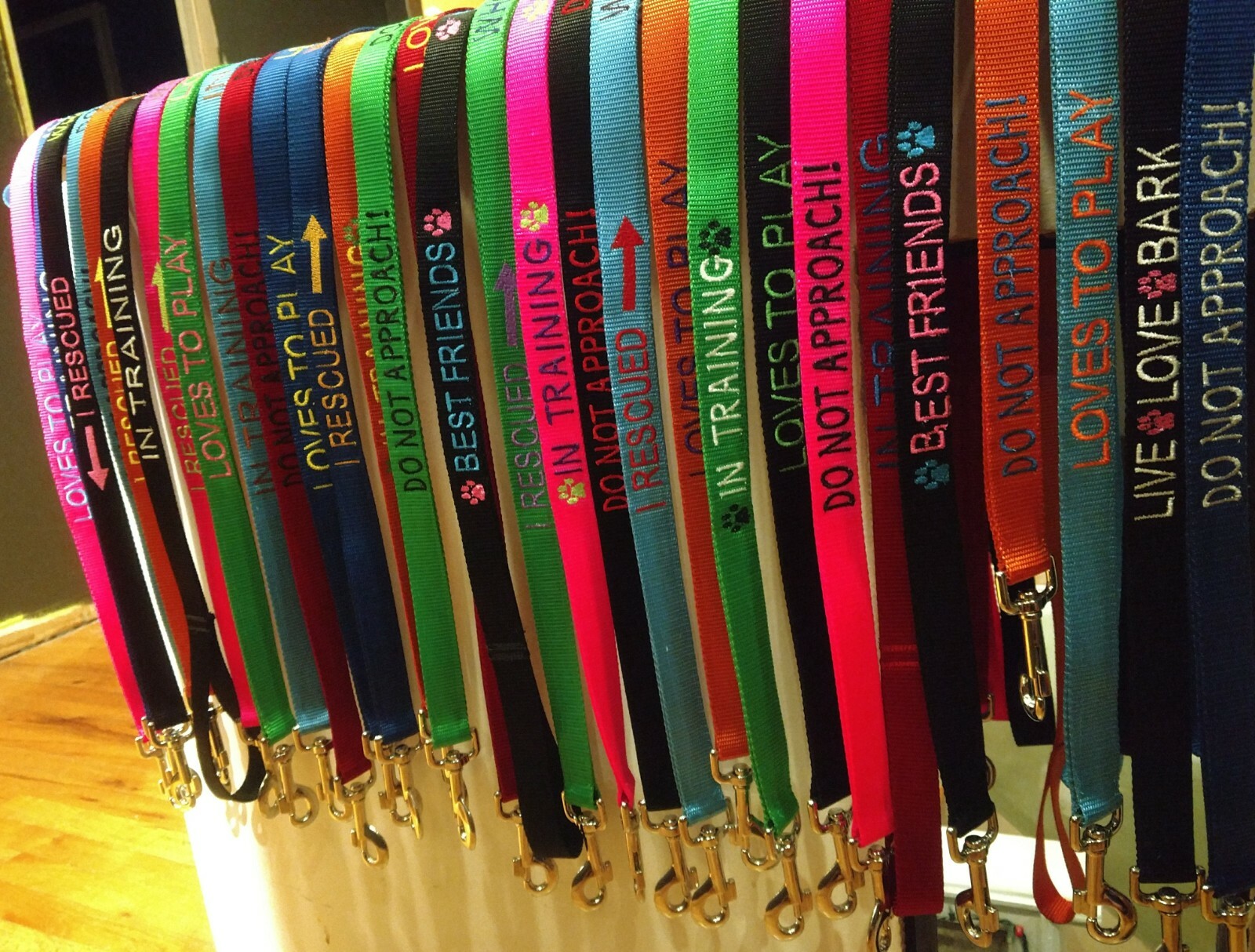 Personalized embroidered DOG LEASH with slot for your poop bags 3 sayings