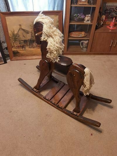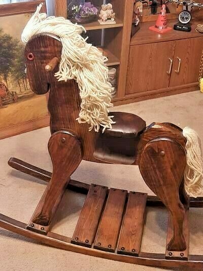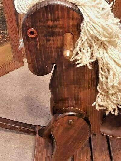 как выглядит WOODEN ROCKING HORSE LARGE HANDMADE DARK STAINED FAMILY HEIRLOOM QUALITY фото
