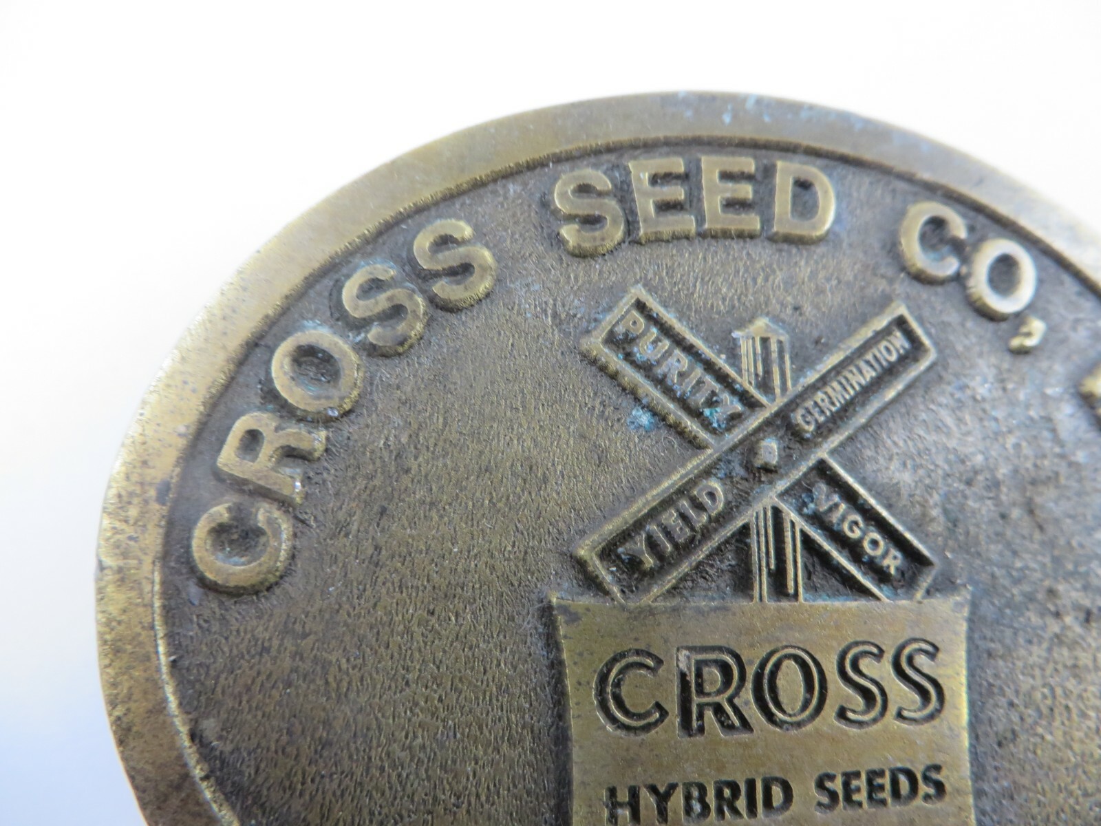Vtg CROSS SEED COMPANY INC. Belt Buckle Brass BUNKER HILL, KANSAS Hybrid Seeds