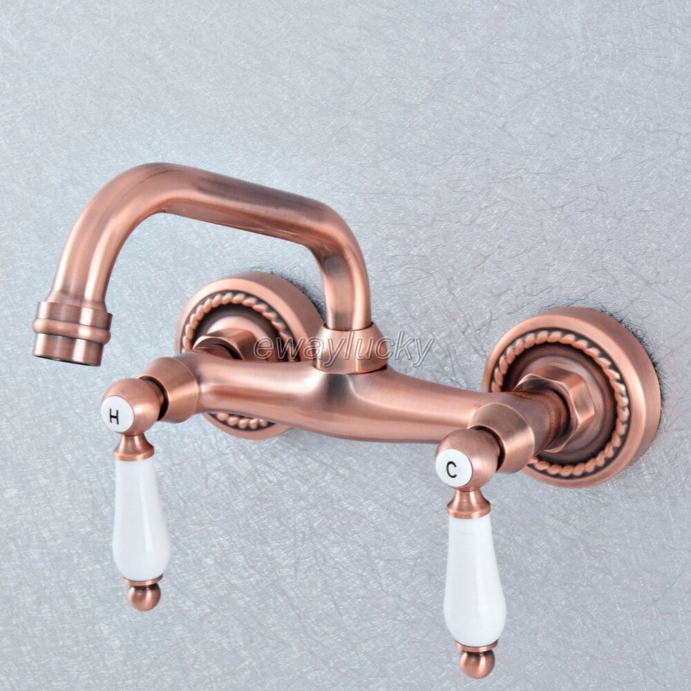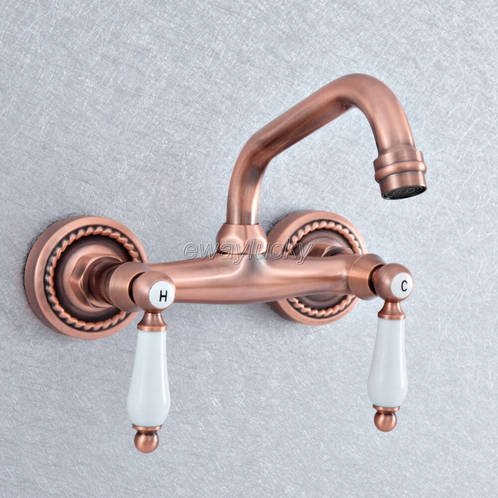 Antique Red Copper Swivel Spout Basin Sink Bathroom Mixer Tap Lavatory Faucet
