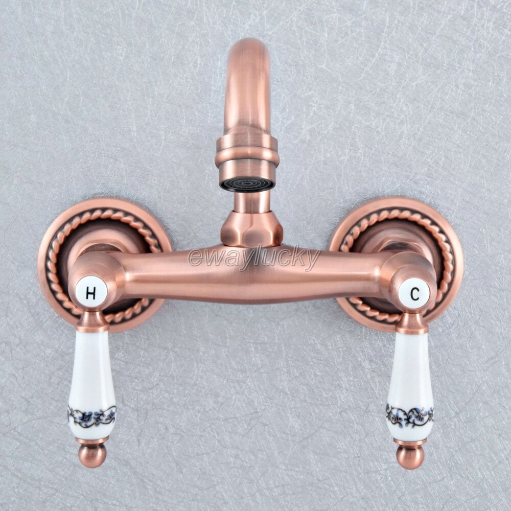 Antique Red Copper Swivel Spout Basin Sink Bathroom Mixer Tap Lavatory Faucet