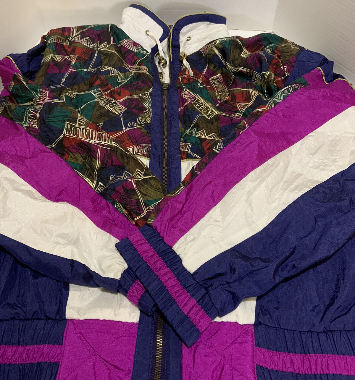 Women s EAST WEST Vtg 90s Windbreaker Jacket Coat Retro Colorblock Spring Med.