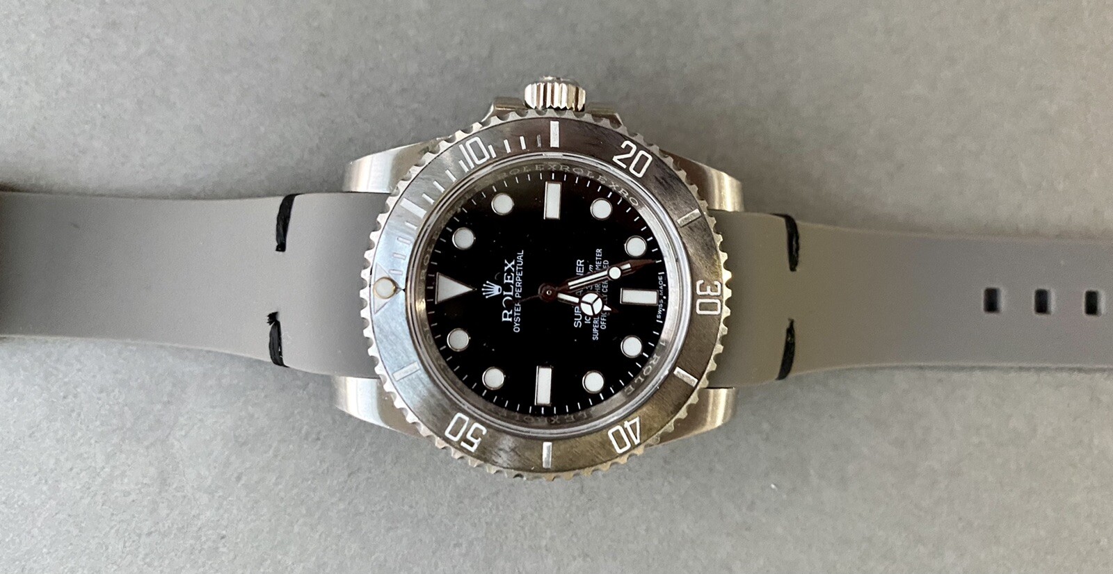 как выглядит 20mm GRAY F Silicone Rubber Strap For Rolex Daytona Datejust GMT Explorer BLACK фото