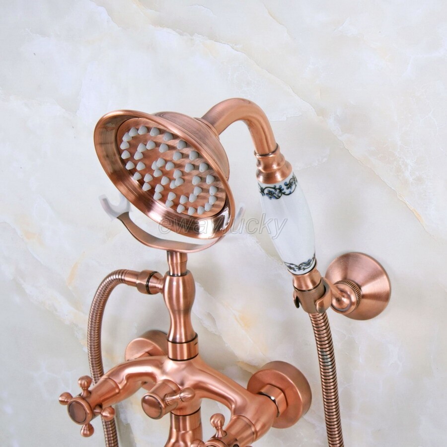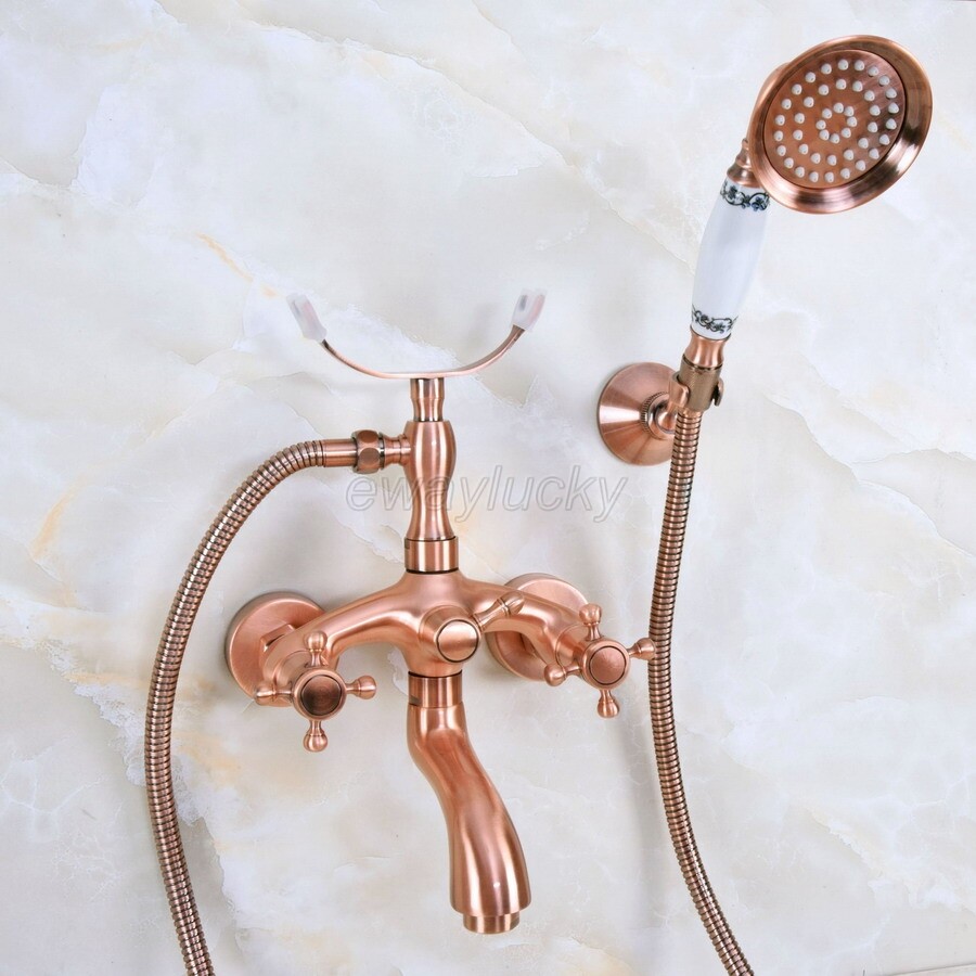 Antique Red Copper Clawfoot Bath Tub Filler Faucet Set Handheld Shower wna370