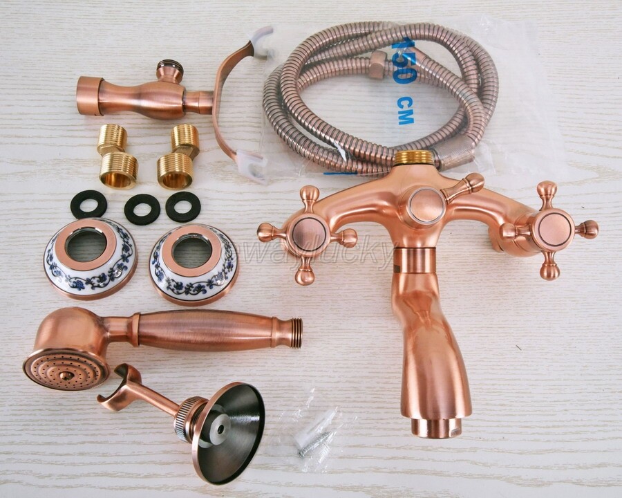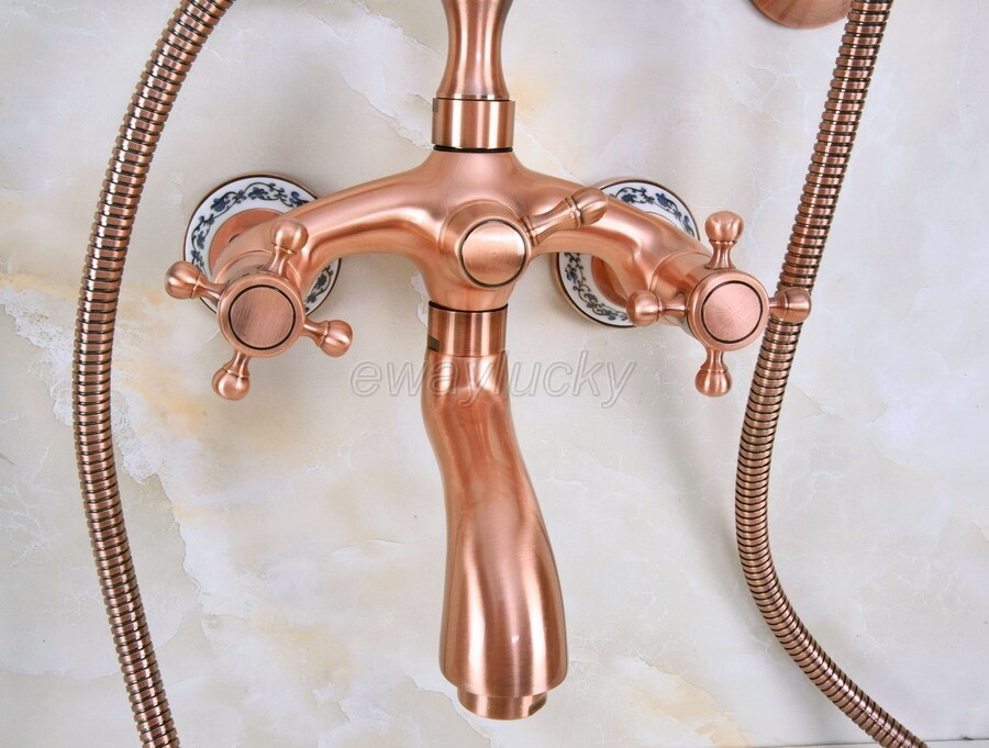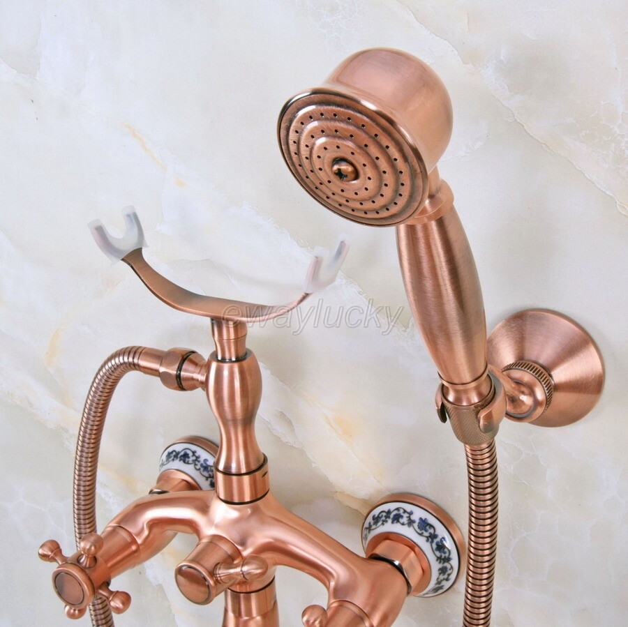 Wall Mount Red Copper Clawfoot Bath Tub Filler Faucet Set Handheld Shower wna372