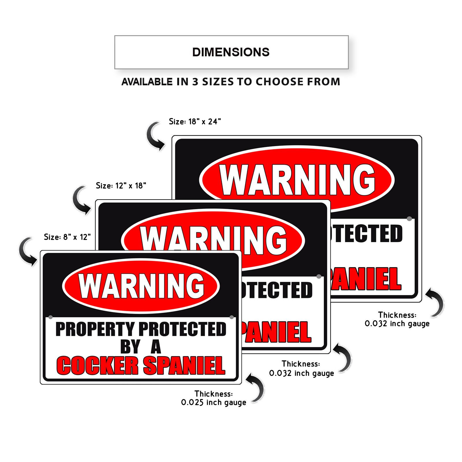Property Protected By A Cocker Spaniel, Beware of Dog Warning Novelty Metal Sign