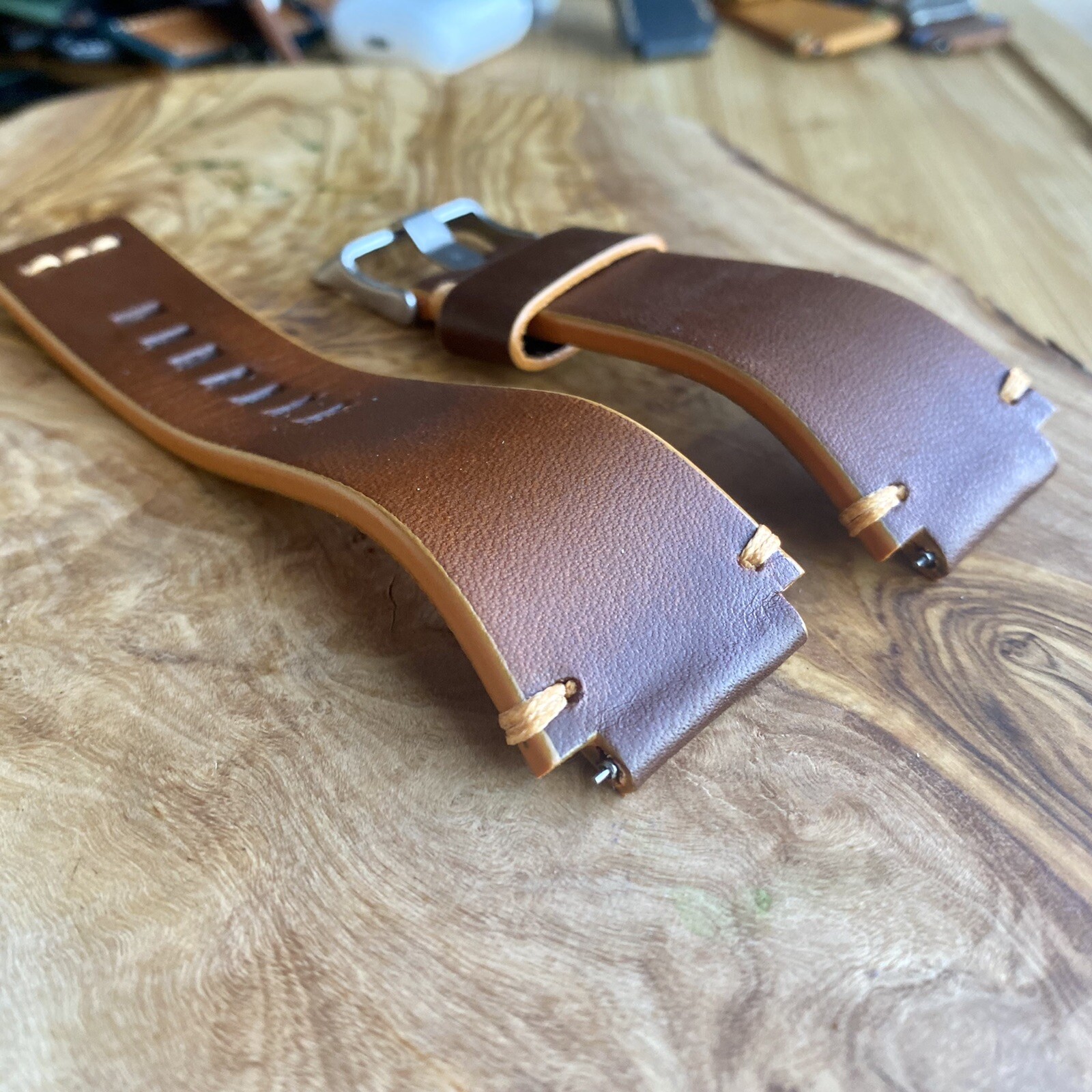 как выглядит 24mm Silky Smooth Brown Bell Ross Italian Leather Watch Strap BR01 BR03 Large фото