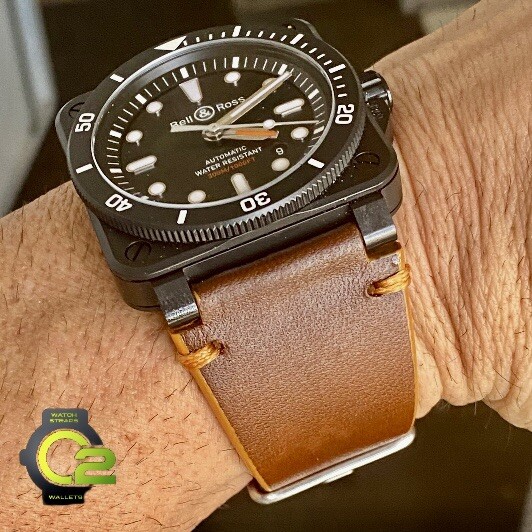 24mm Silky Smooth Brown Bell Ross Italian Leather Watch Strap BR01 BR03 Large