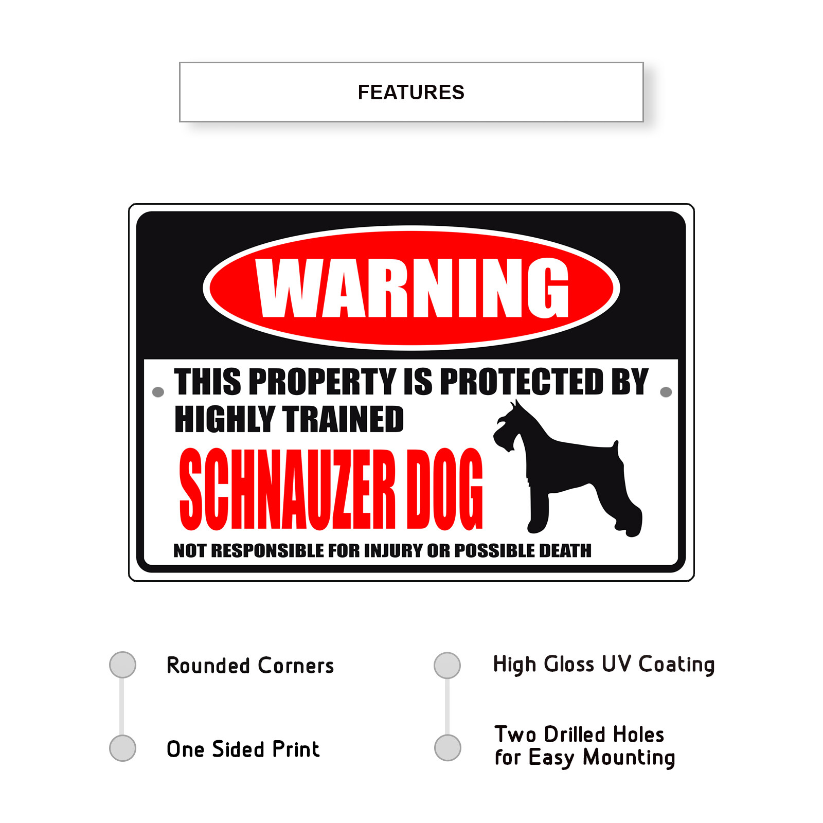 как выглядит Warning This Property Is Protected By Trained Schnauzer Dog Aluminum Metal Sign фото