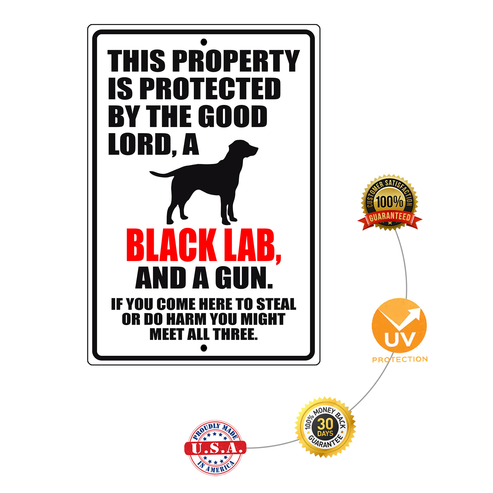 This Property Is Protected By The Good Lord A Black Lab Dog Aluminum Metal Sign