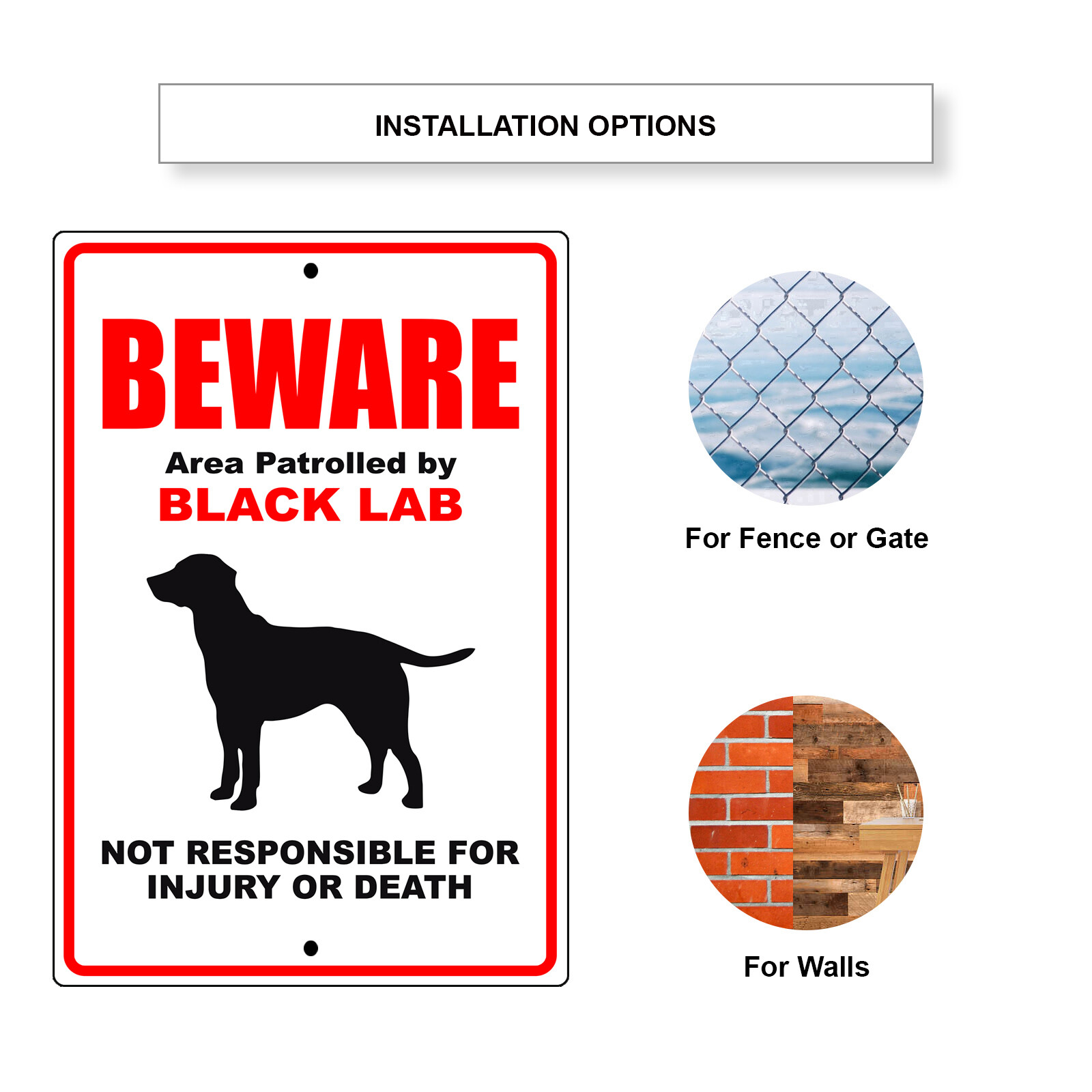 как выглядит Beware Area Patrolled By Black Lab Dog Alert Notice Safety Aluminum Metal Sign фото