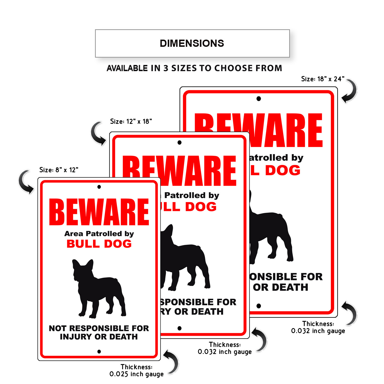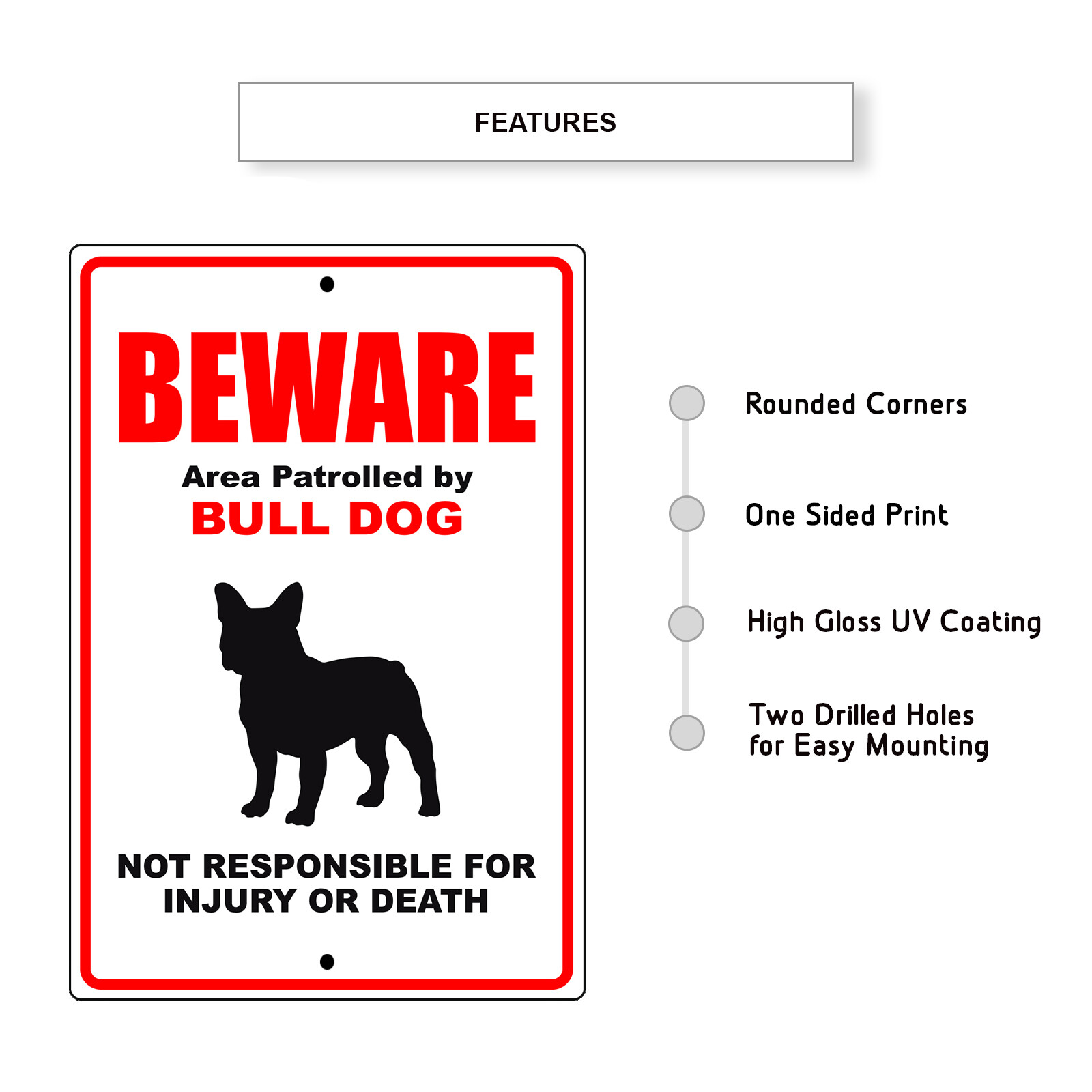 Beware Area Patrolled By Bull Dog Notice Safety Novelty Beware of Dog Metal Sign