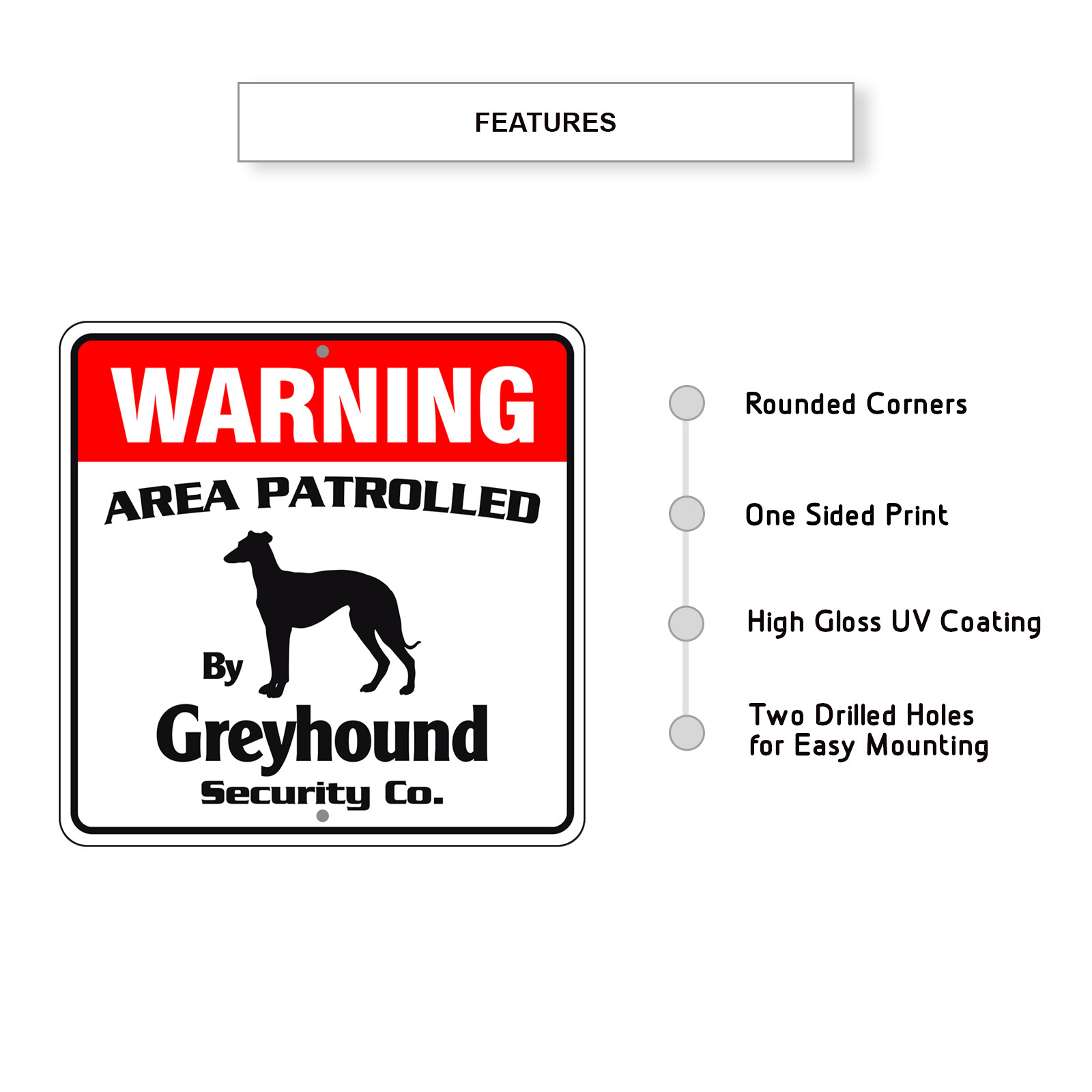 как выглядит Warning Area Patrolled By Greyhound Dog Safety Aluminum Metal Sign 12"x12" фото