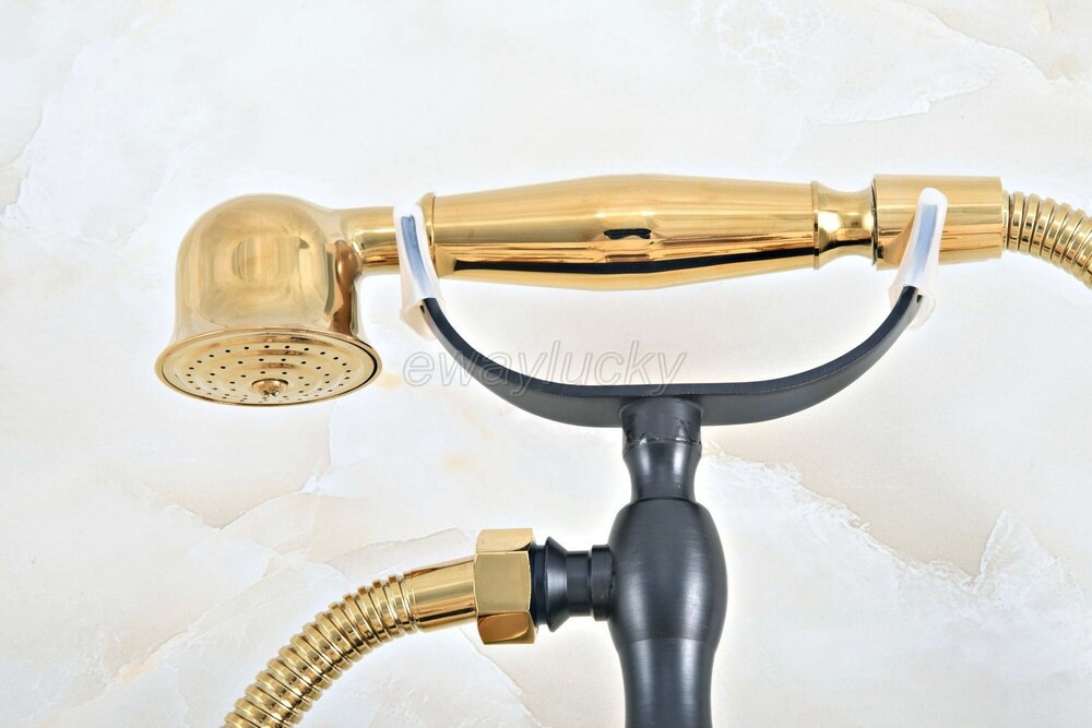 как выглядит Gold Black Brass Wall Mounted Clawfoot Bath Tub Faucet with Handheld Shower фото