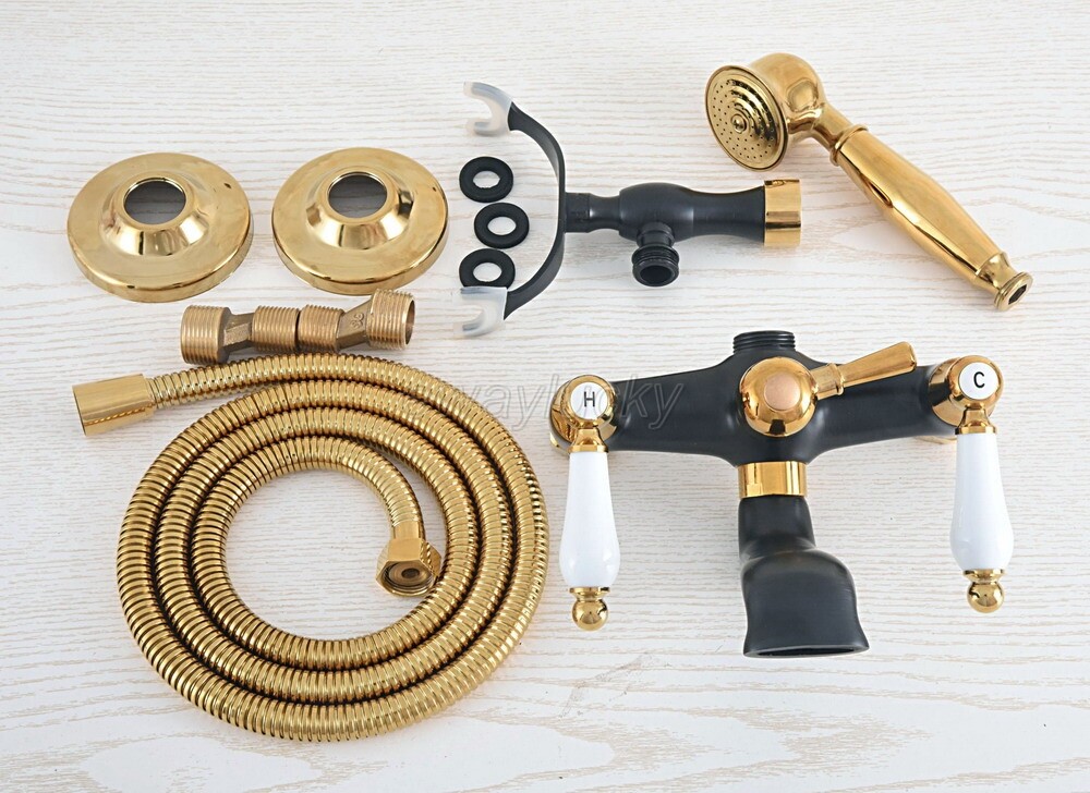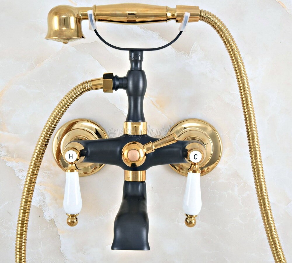 Gold Black Brass Wall Mounted Clawfoot Bath Tub Faucet with Handheld Shower