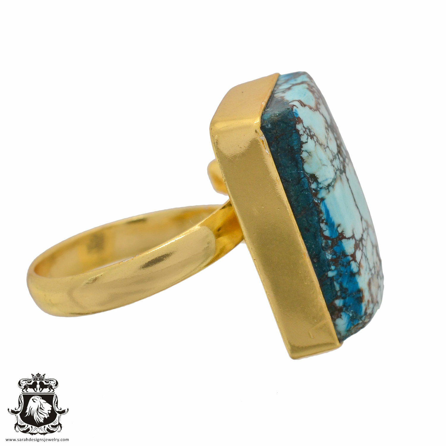 Size 10.5 - Size 12 Adjustable NO. 8 Turquoise 24K Gold Plated Ring GPR896