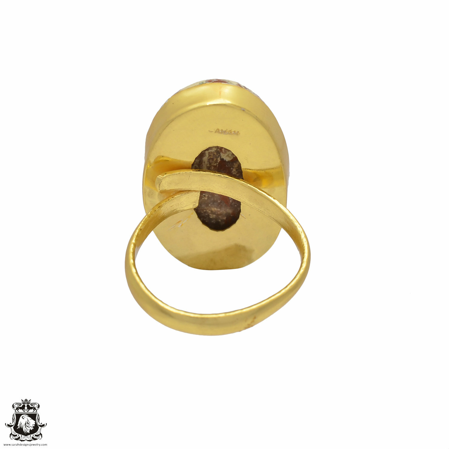 как выглядит Size 10.5 - Size 12 Adjustable Wild Horse Jasper 24K Gold Plated Ring GPR17 фото