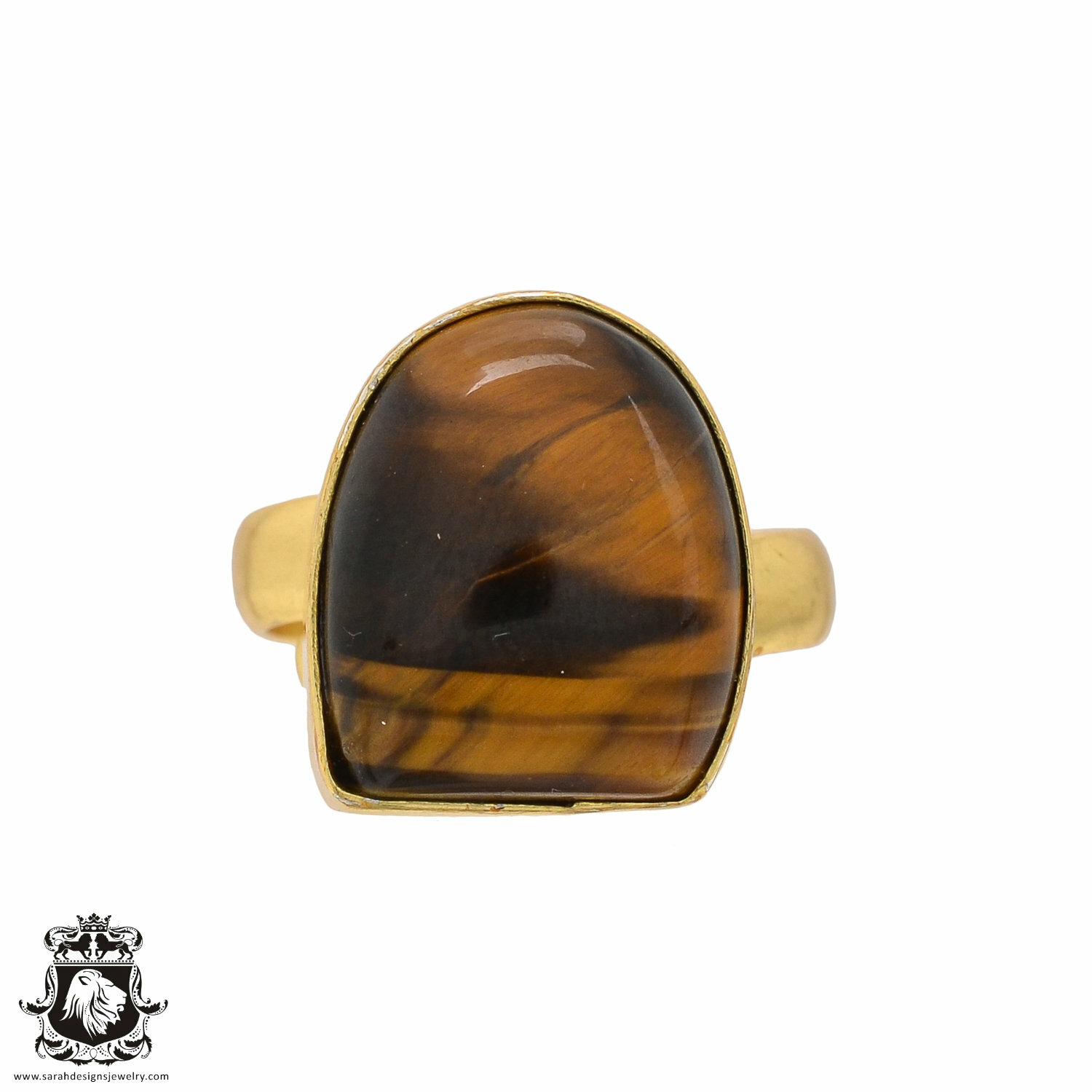 Size 7.5 - Size 9 Adjustable Tiger's Eye 24K Gold Plated Ring GPR543