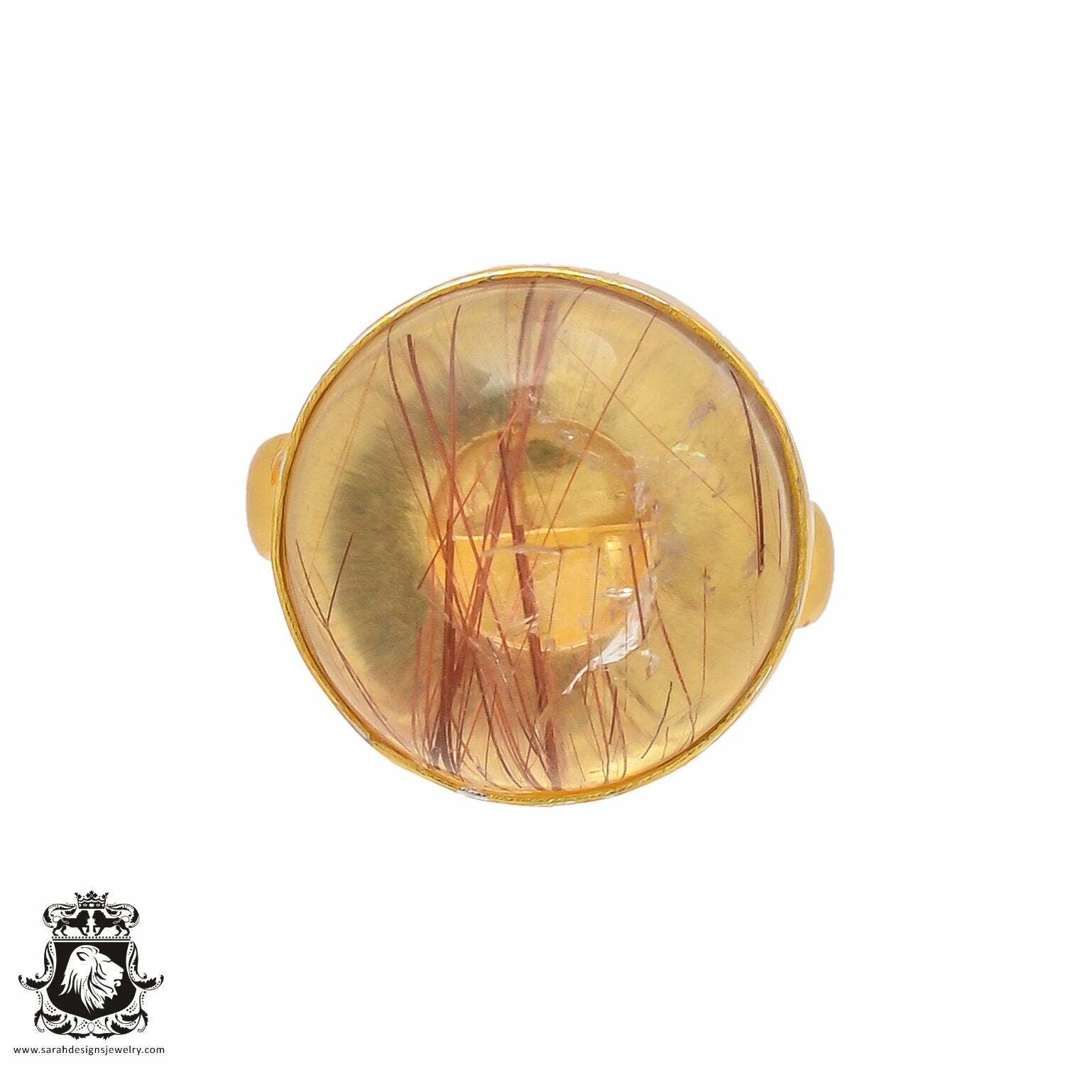 Size 7.5 - Size 9 Adjustable Red Rutile Quartz 24K Gold Plated Ring GPR322