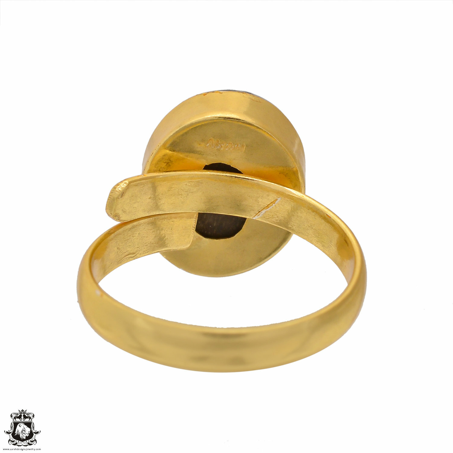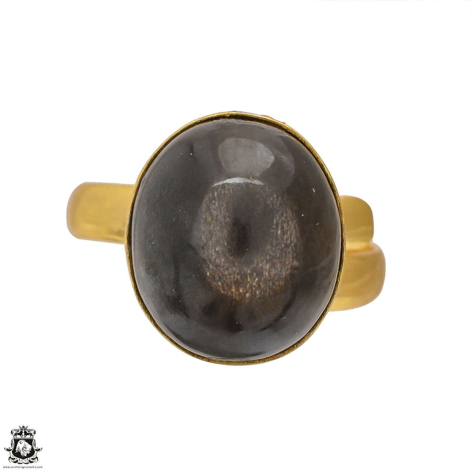 Size 9.5 - Size 11 Adjustable Sapphire Obsidian 24K Gold Plated Ring GPR1563