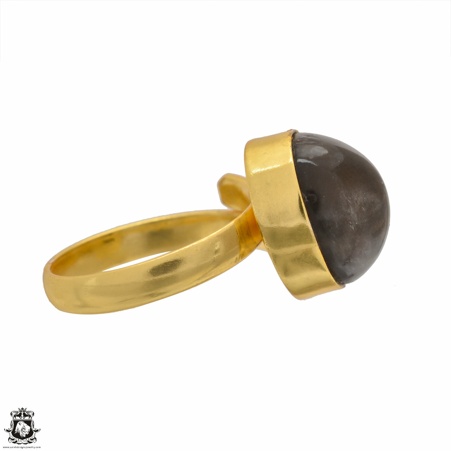 как выглядит Size 9.5 - Size 11 Adjustable Sapphire Obsidian 24K Gold Plated Ring GPR1563 фото